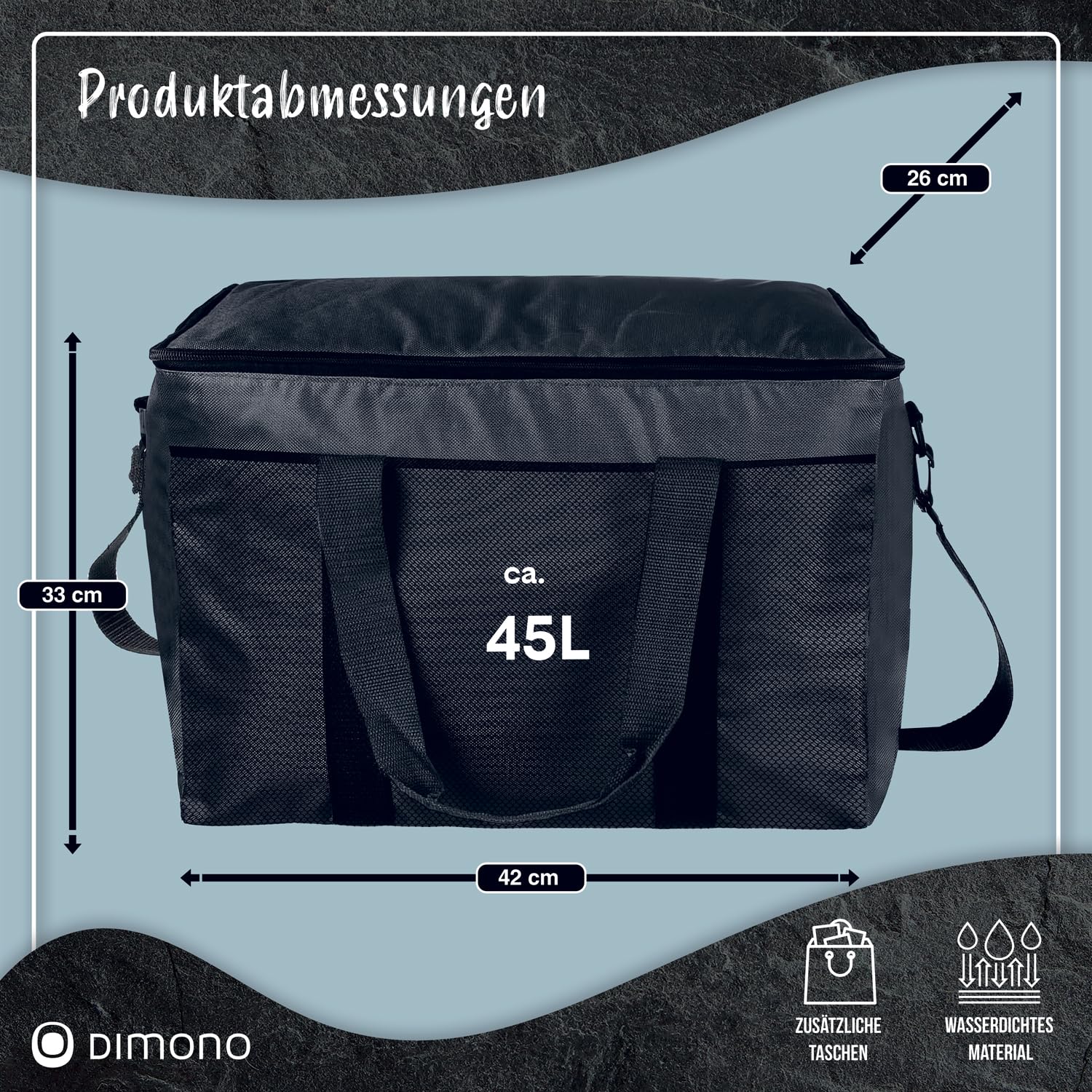 XXL cooler bag insulated drinks & snack bag ice bag picnic bag for camping traveling vacation 15, 25, or 45 liters (45 liters - Black)