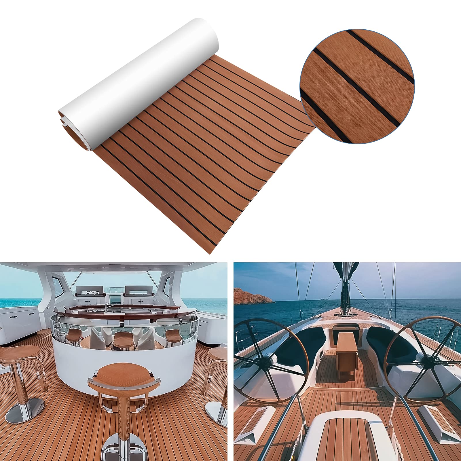 Yacht flooring, Teak EVA foam boat flooring non-slip mat Marine non-slip floor deck carpet self-adhesive (Brown)