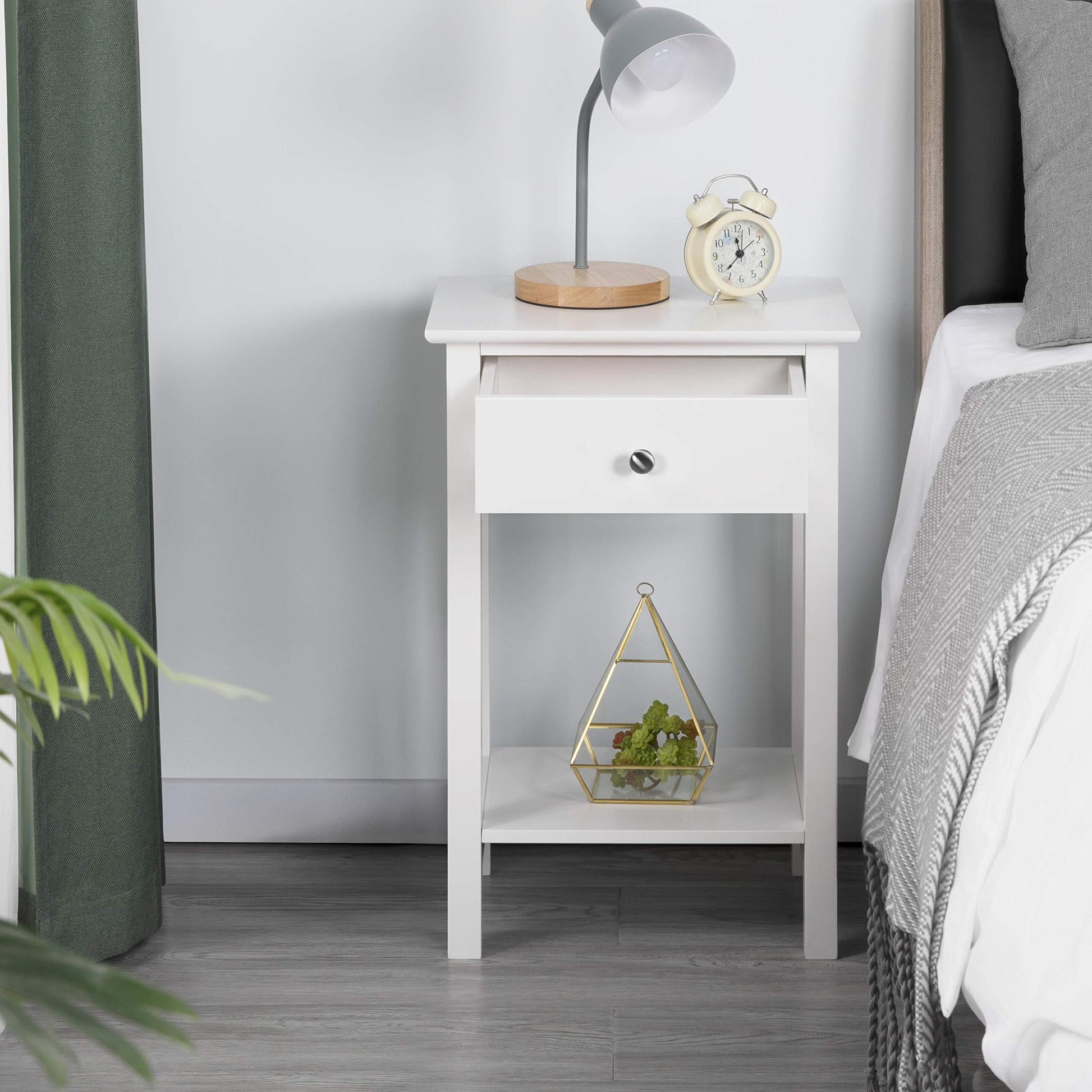 Yaheetech 2 Pack Nightstand Side End Table with Drawer and Shelf Modern Telephone Table Coffee Table made of MDF 40 x 30 x 61 cm, White
