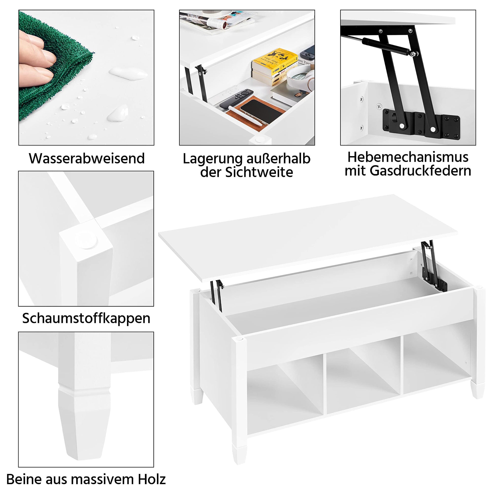 Yaheetech Coffee Table Height Adjustable Lift Top Table Hidden Storage Side Table Wooden Sofa Table for Living Room White