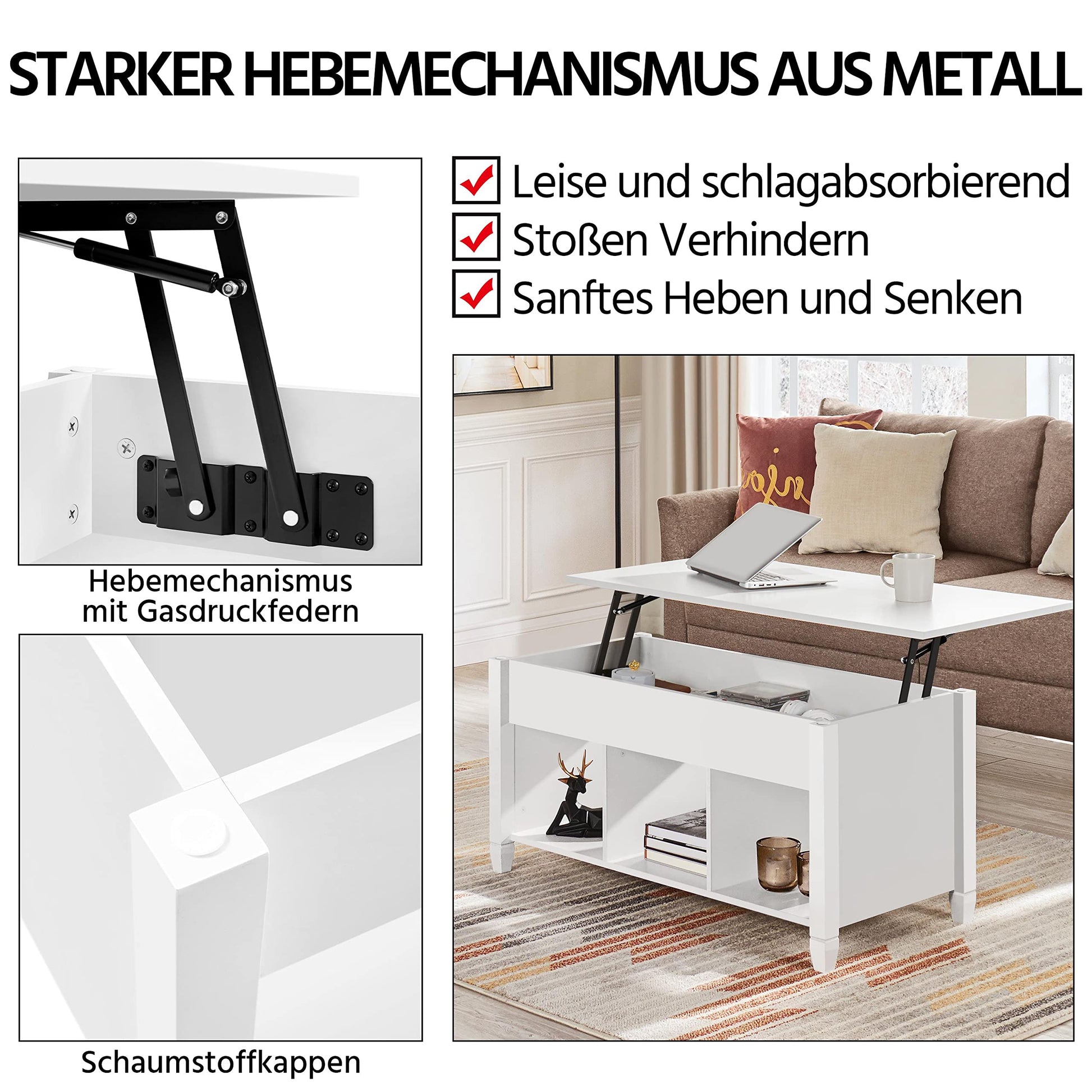 ["Practical lift-top design - Using a gas lift and lifting frame, you can easily and quietly raise the tabletop. This mechanism allows the table to transform from a coffee table to a workspace.