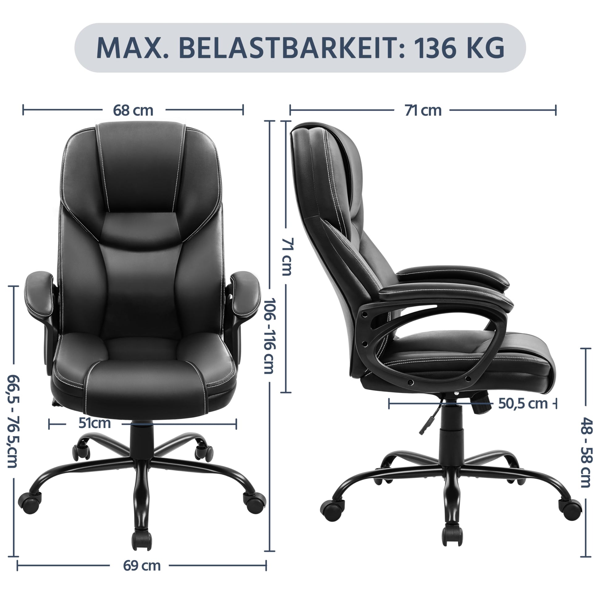 Yaheetech ergonomic executive chair, high back desk chair, computer chair, swivel office chair with padding, adjustable height, black PU leather.