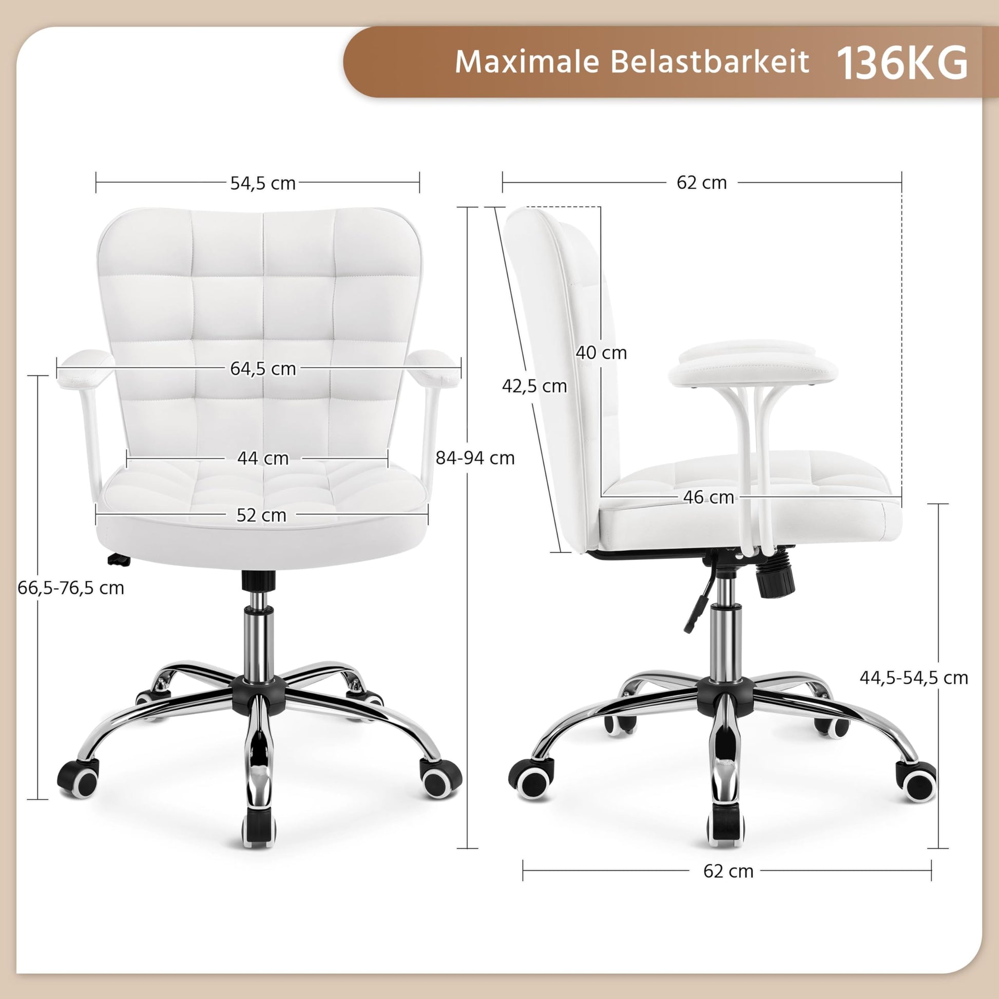 Yaheetech home office chair desk chair office chair work chair made of faux leather, swivel chair with soft armrests, height adjustable padded chair computer chair with wheels, white
