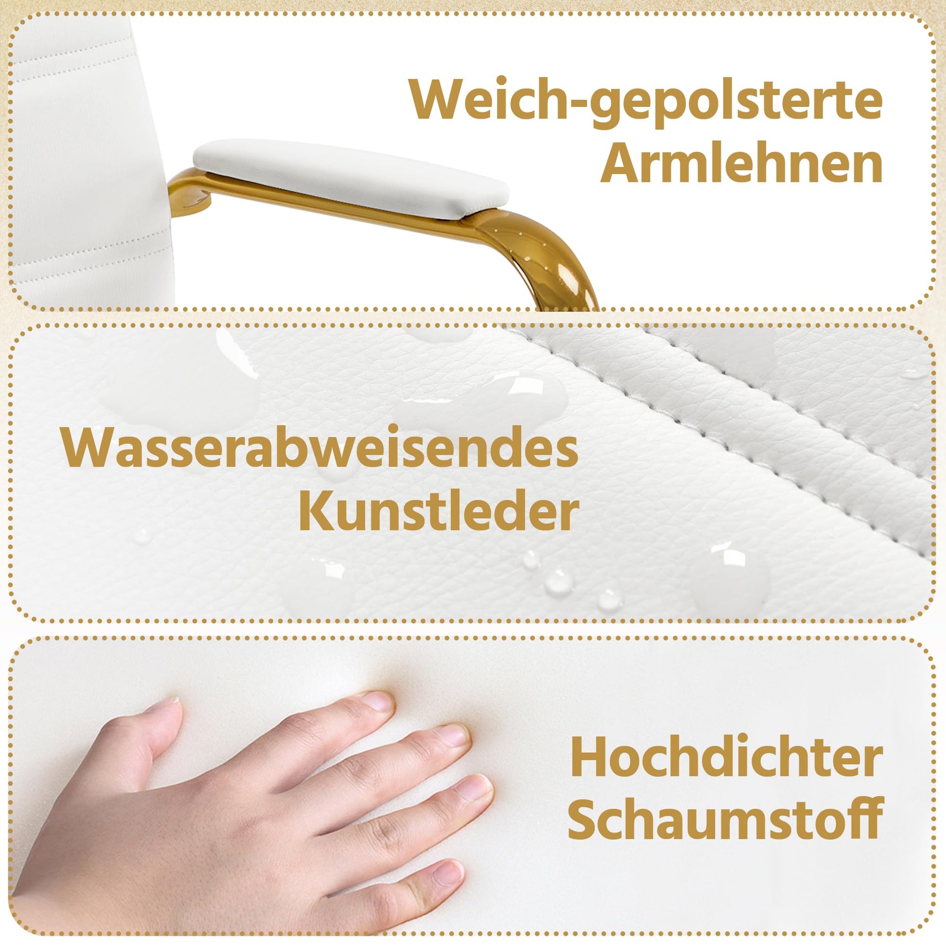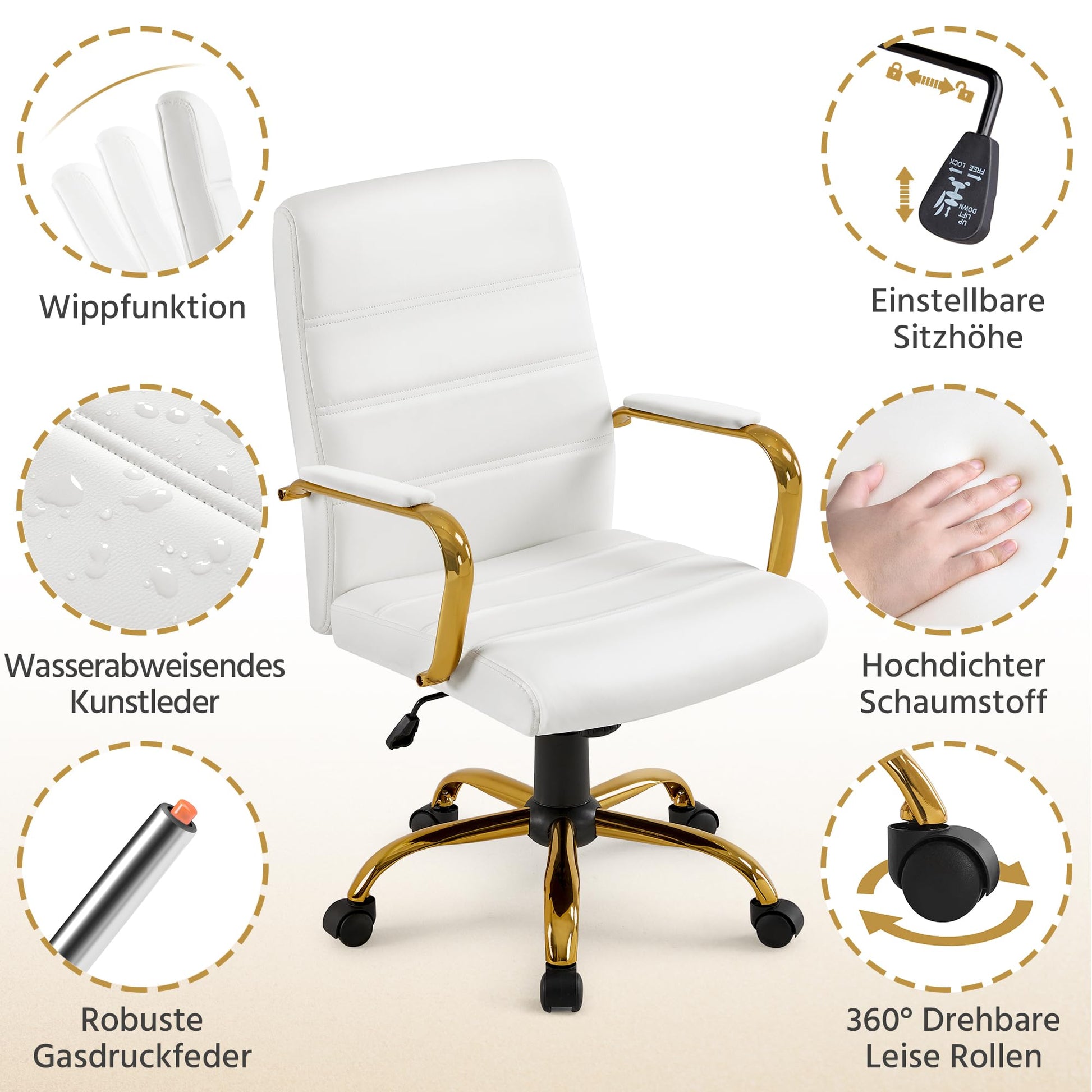 Yaheetech office chair ergonomic desk chair, swivel chair with casters, office stool with armrests, work chair with backrest, executive chair load capacity up to 130kg White/Golden.
