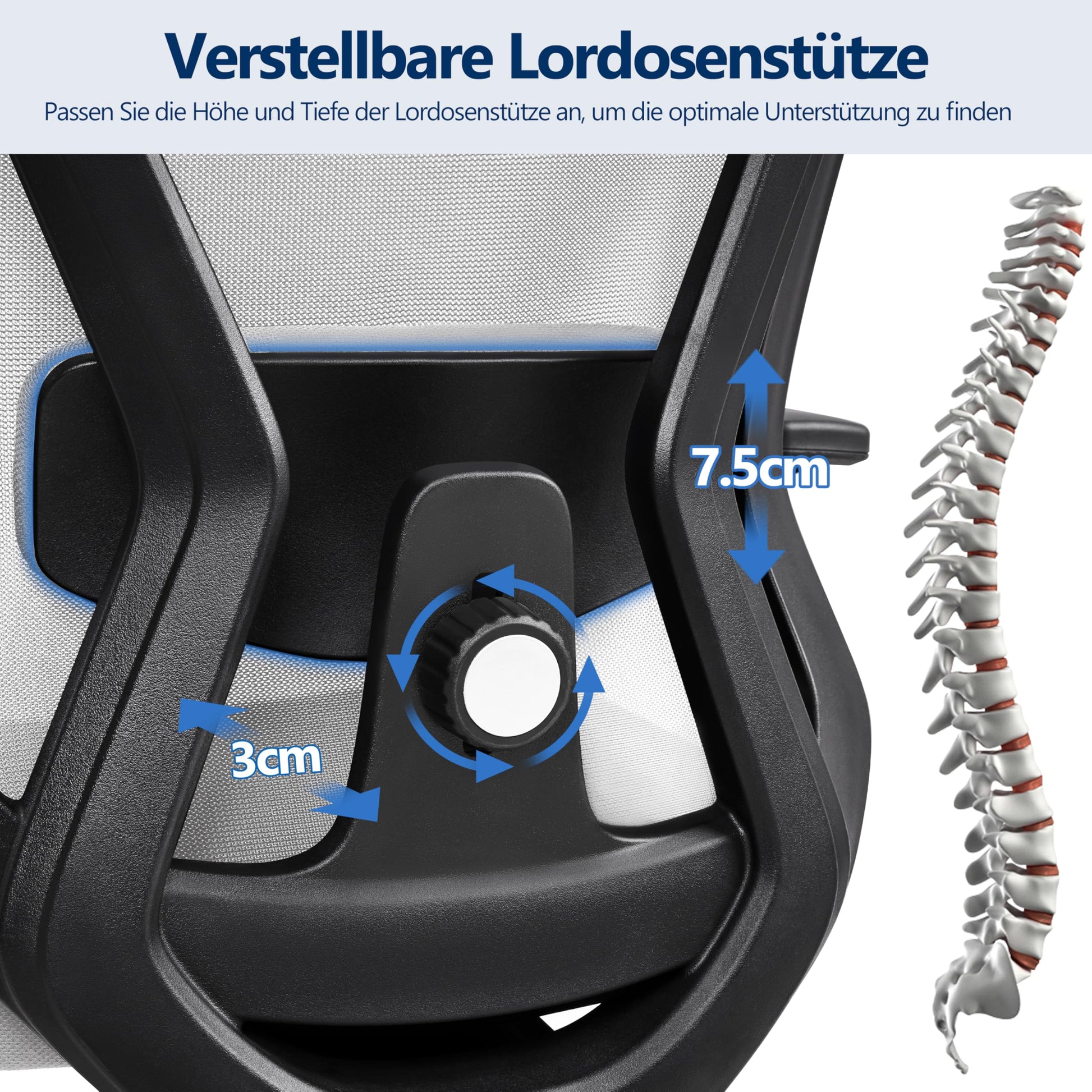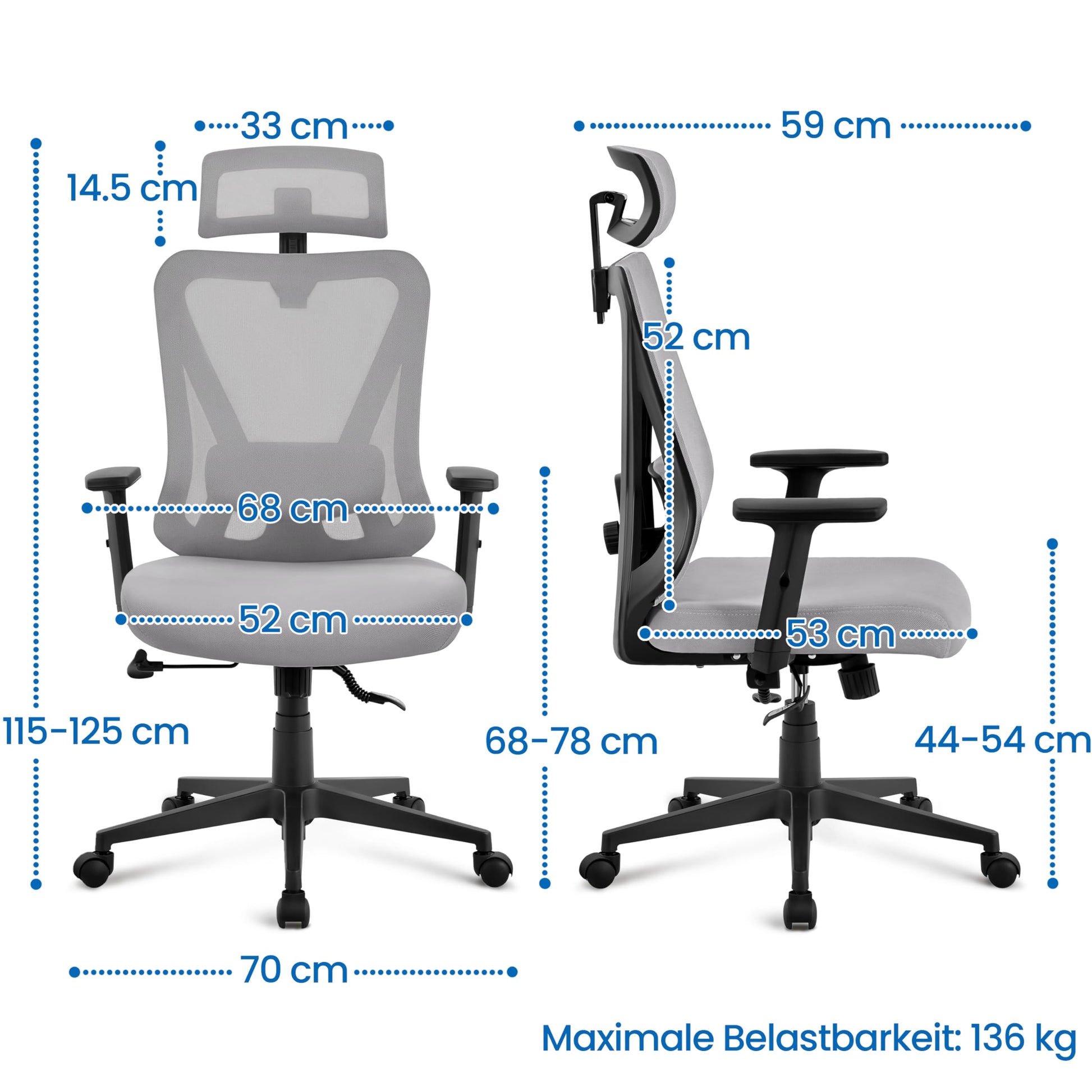 Adjustable Headrest & Armrests: The headrest can be easily adjusted up and down by 8 cm to suit your sitting position. The 45° adjustment helps you find a comfortable tilt. Additionally, the armrests can be adjusted in height by 7 cm.