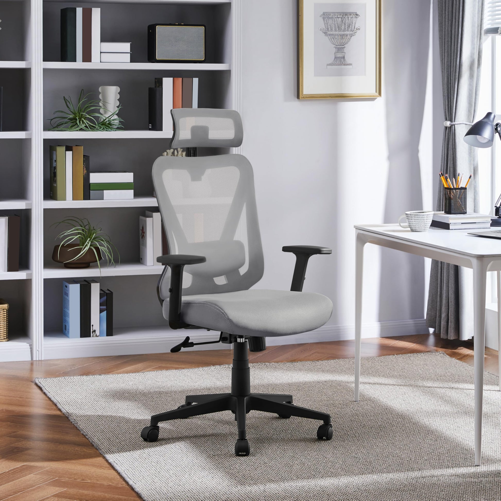 "Ergonomic Design for High Comfort: This office chair is suitable for all body types and offers adjustable headrest, armrests, lumbar support, tilt angle, and seat height. The S-shaped backrest promotes a comfortable sitting posture, even during long working hours.