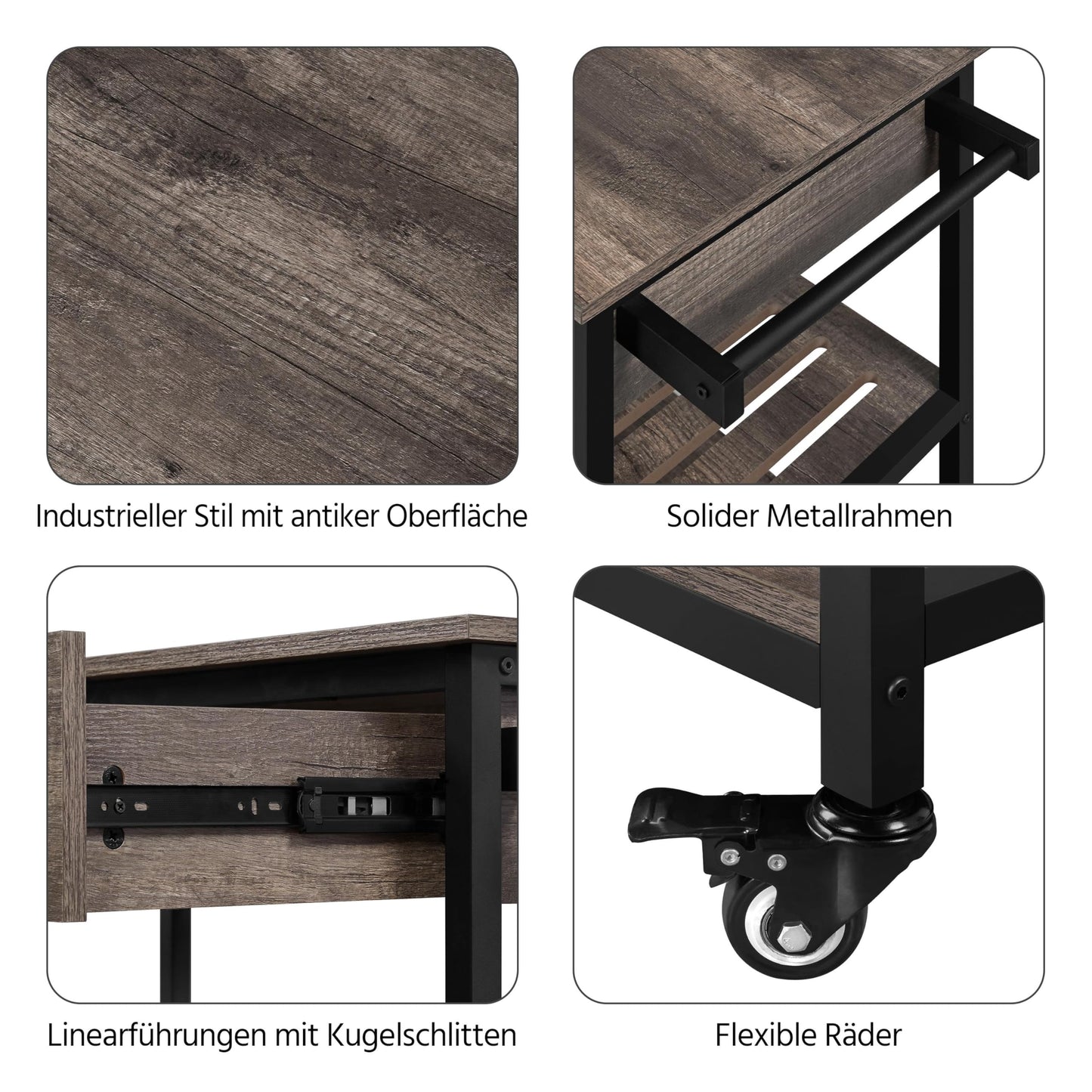 Yaheetech Serving Cart with Drawer Kitchen Trolley with 2 Shelves Rolling Cart Kitchen Trolley with 4 Wheels Kitchen Shelf Movable Kitchen Islands Side Table 109.5 x 51 x 92 cm, Taupe.