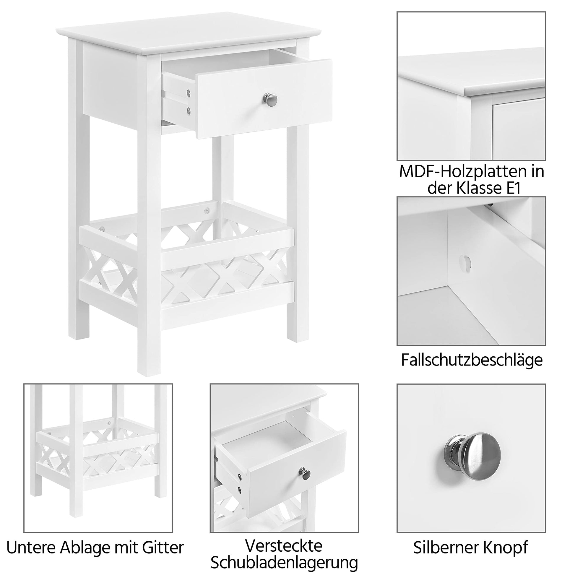 Open & hidden storage space - In the drawer of the side table, you can store your personal items. In the basket at the bottom, you can place books, magazines, or decorations. The grid provides protection for the items.