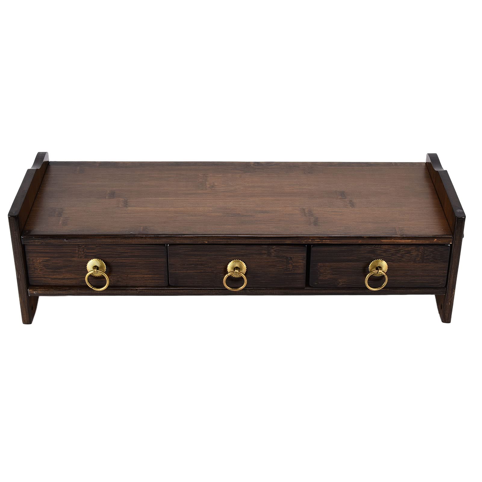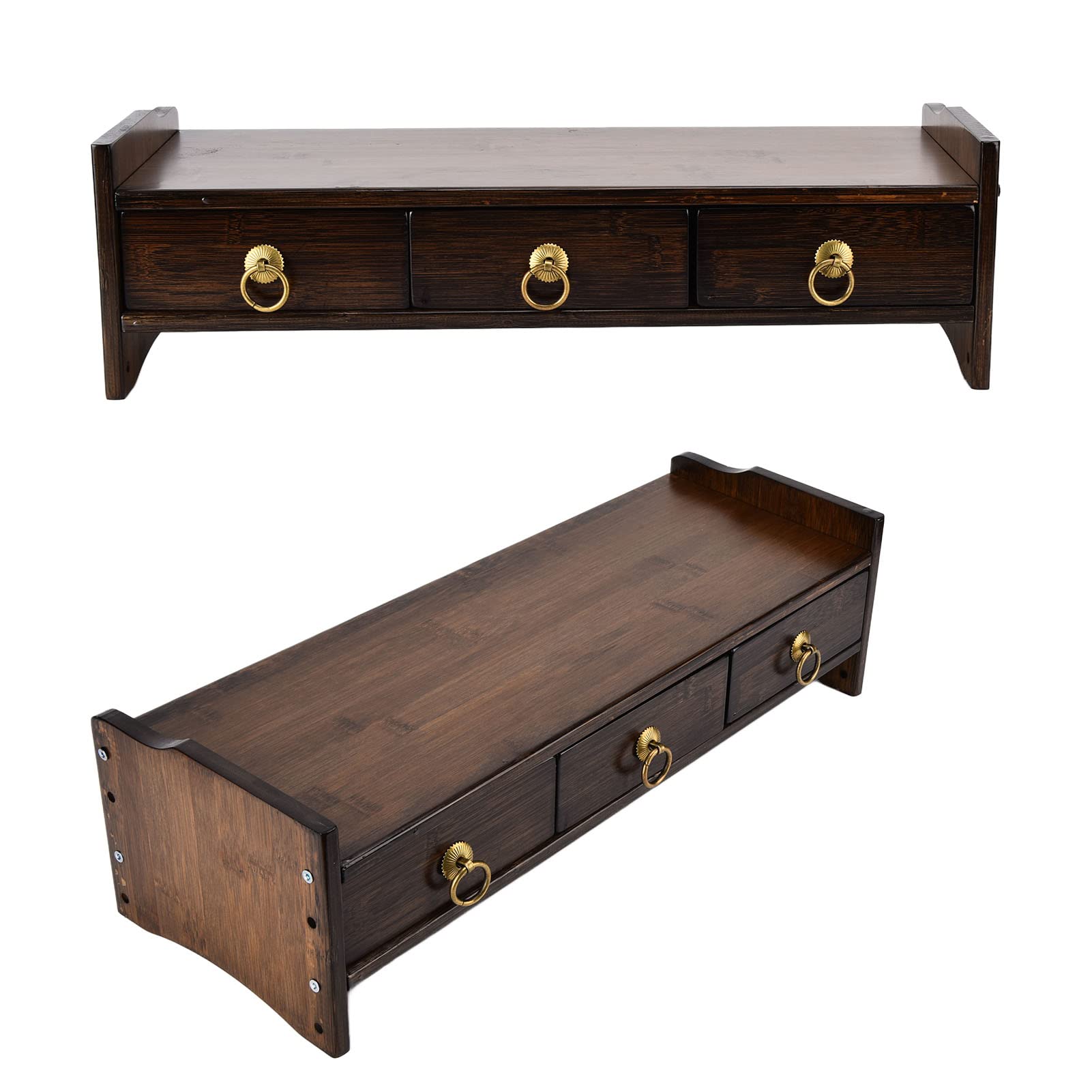 yangsense Monitor Stand, non-absorbent bamboo monitor stand with 3 drawers for studying at home office (walnut finish three drawers with back)