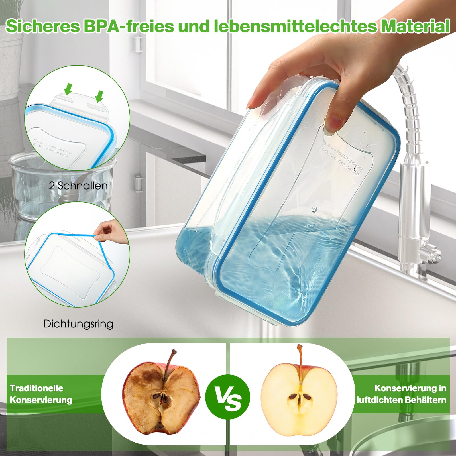 ["BPA-FREE FOOD STORAGE CONTAINERS: These food storage containers with lids are made of BPA-free and food-safe material. They are durable and easy to clean, featuring a transparent design for quick content observation","AIR-TIGHT & LEAK-PROOF: With removable rubber seals and a 4-side locking system, our storage containers set is airtight and 100% leak-proof, keeping your food fresh and odor-free","MICROWAVE AND FREEZER SAFE: With a temperature range of -4°F to 230°F, the storage containers with lids are safe for microwave, dishwasher, and freezer. Perfect for transporting fruits, sandwiches, or salads (Tip: Please remove the lid before microwaving)","SPACE-SAVING: Stackable food containers maximize valuable storage space and bring order to your pantry and fridge. These plastic containers are a versatile solution for your storage needs. The perfect gift for any household","VERSATILE SET OF 50 PIECES: Our food storage containers with lids include 25 containers with 25 lids, 16 reusable labels. The set contains 16 rectangular containers (2*84.5oz, 2*50.7oz, 2*33.8oz, 2*16.9oz, 4*8.1oz, 4*4.1oz), 4 round containers (1*6oz, 1*13.5oz, 1*27oz, 1*50.7oz), and 5 sauce containers (5*1.4oz)"]