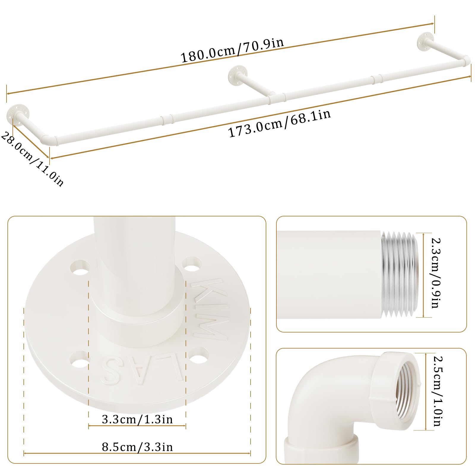 "Save Space For Your Room And Cut Clutter: Hang up your frequently used clothes and you can find them quickly, you can also keep them neatly organized and wrinkle-free. This metal pipe hanger consists of 4 interconnected pipes, Size: 180 x 28 cm."