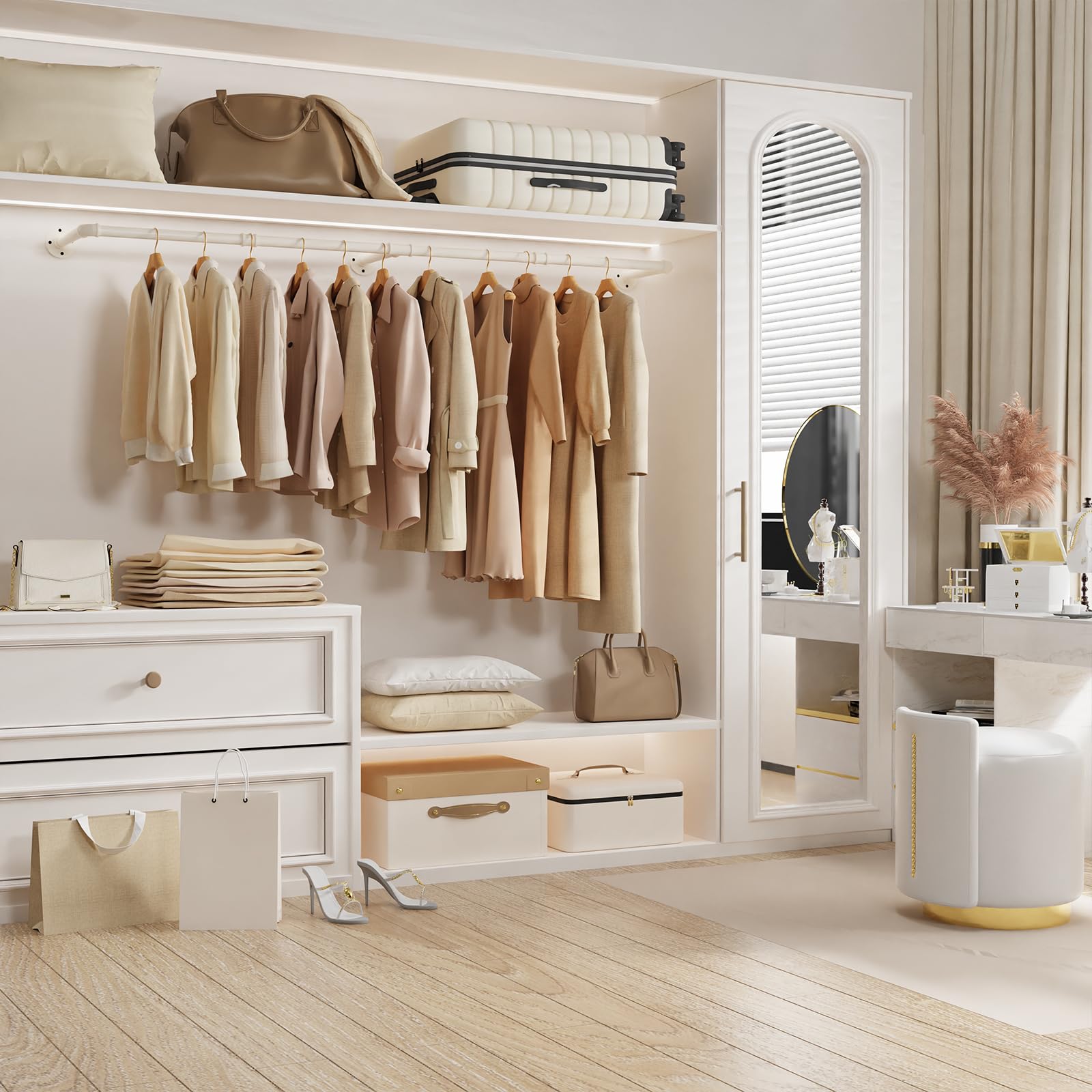 "Ideal For Various Occasions: You can use the clothing rack in your home or store to display your favorite clothes, or place it in a walk-in closet and laundry room, and as a kitchen shelf, etc."