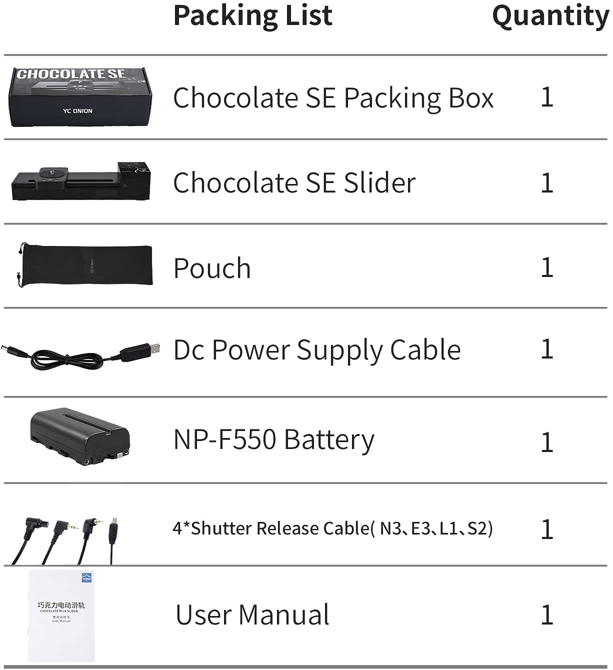 【Control Method/Compatible Device/Application】YC Onion mini motorized camera slider supports APP/manual control; The maximum load capacity of the motorized slider is 20kg, suitable for video cameras, film cameras, DSLRs, mirrorless cameras, Gopros, mobile phones, etc. The application areas of the camera slider are quite extensive, such as wedding shooting, product video shooting, food shooting, advertising photography, portrait photography, landscape photography, commercial film shooting, etc."]
