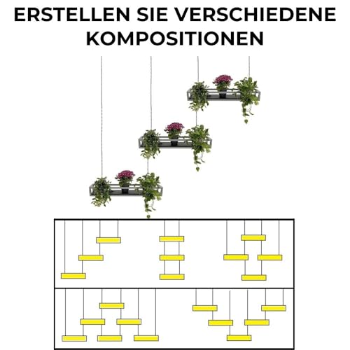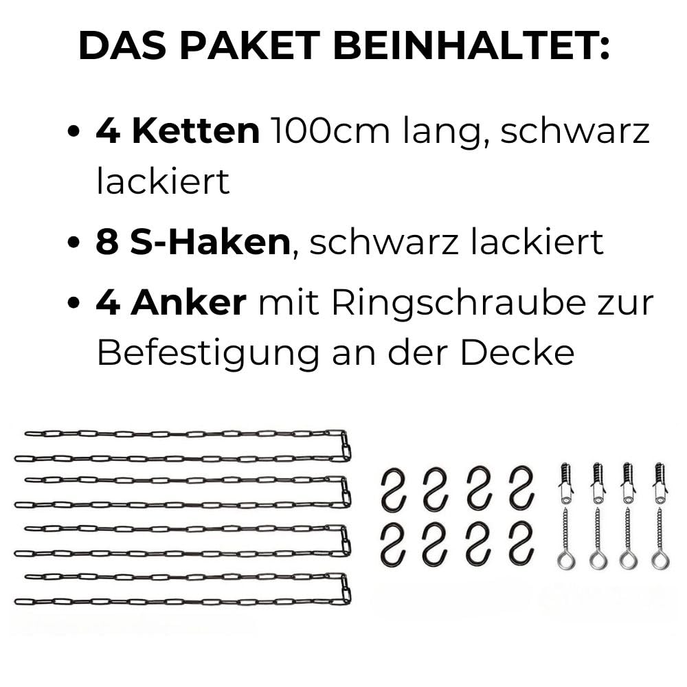 "✅ EASY ASSEMBLY: Assembly instructions are included. Easy shelf assembly in 5 minutes, plus ceiling mounting. Package includes: 4 x 100 cm long chains and 8 x black painted S-hooks. 4 anchors with ring screws for ceiling mounting"]