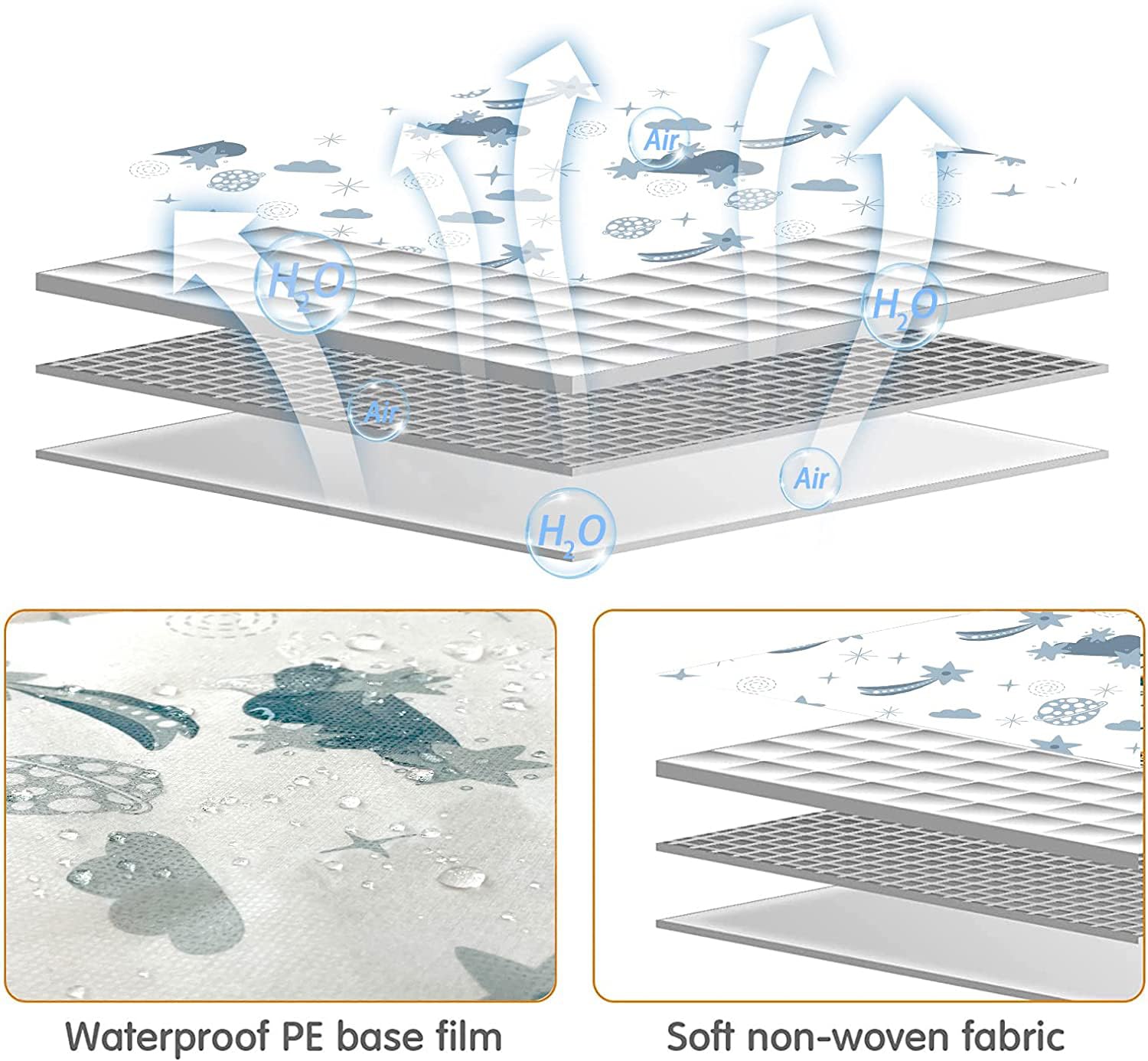 ["Waterproof and skin-friendly】Our toilet seat cover is made of four layers of high-quality fabrics. The front side with pattern is made of skin-friendly and ultra-soft cotton fabric - better for sensitive skin. It feels comfortable to sit on, the waterproof PE film on the bottom is designed to protect the skin from moisture and prevent liquid from penetrating"],