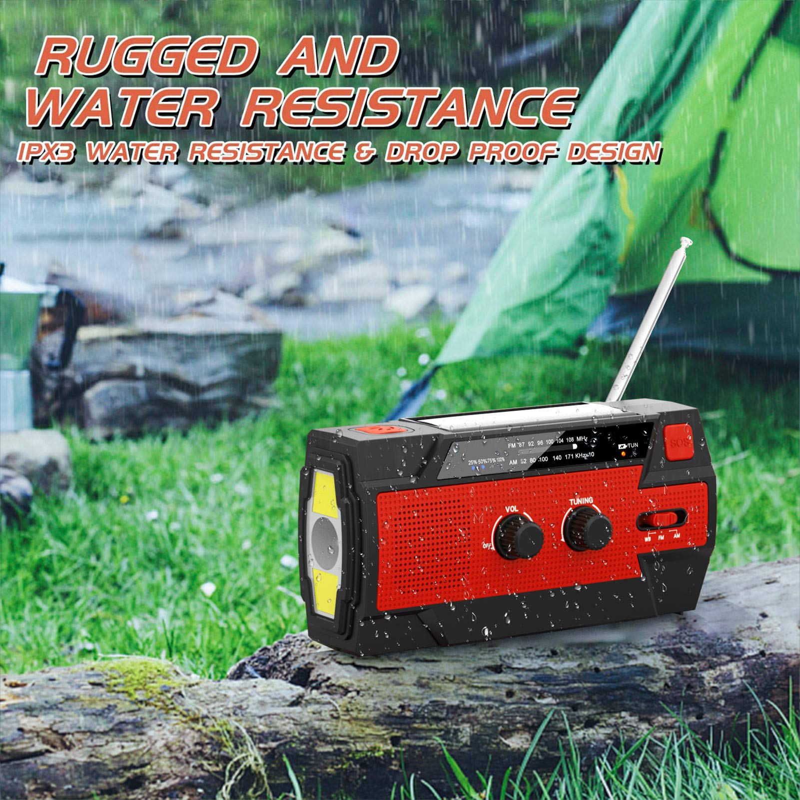"Multifunctional Radio: This outdoor solar radio can not only be used for listening to radio and weather updates, but also as a 4000mAh power bank, flashlight, and SOS alarm. It is perfect for camping and traveling and is a great companion for emergencies, hiking, camping, and outdoor activities.