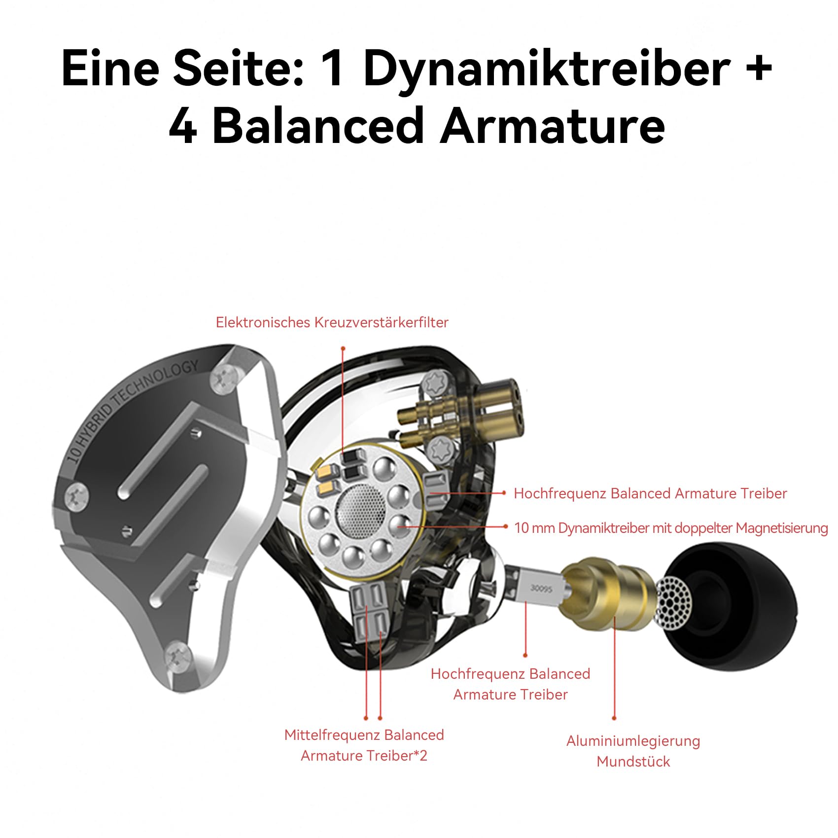 ["【Hybrid 5 Driver Technology】 The KZ ZS10 Pro combines 4 Balanced Armature and 1 Tesla Dynamic Driver. The DD enhances deep bass, while the 4 BA ensure clear vocals and instrument separation. This configuration delivers powerful bass, precise mids, and ultra-clear highs up to 40,000 Hz, making these IEMs the top choice for audiophiles, gamers, and musicians.","【Advanced PCB Design & Improved Cable】 The special circuit board optimizes frequency separation for clean, distortion-free playback. These in-ear monitors use a high-quality OFC 6N cable that minimizes signal loss and ensures stability even during intense gaming sessions or critical music analysis. The KZ ZS10 Pro headphones surpass standard IEMs in clarity and signal integrity.","【High-Quality Materials & Ergonomic Design】 The KZ ZS10 Pro wired in-ear headset combines precision-crafted resin with aluminum panels for comfort, style, and noise isolation. The ergonomic housing shape naturally conforms to the ear canal, reducing fatigue during long wear. Included are 4 pairs of silicone ear tips in various sizes for a secure and comfortable fit for any ear type.","【Universal 3.5mm Compatibility】 The ZS10 Pro features an oxidation-resistant 3.5mm cable with tangle-free processing. These wired headphones are compatible with PCs, Switch, PS5, smartphones, consoles, and other audio devices. Gamers and music fans appreciate the plug-and-play versatility for immersive, latency-free sound.","【Flexible & Adjustable】 With a detachable 2-pin cable system for easy replacement with preferred cables. Compatible with KZ AZ09 (ASIN: B0CCCQSDTG, sold separately) for wireless use during sports, commuting, or mobile gaming. Explore endless audio possibilities with this versatile high-performance IEM."]