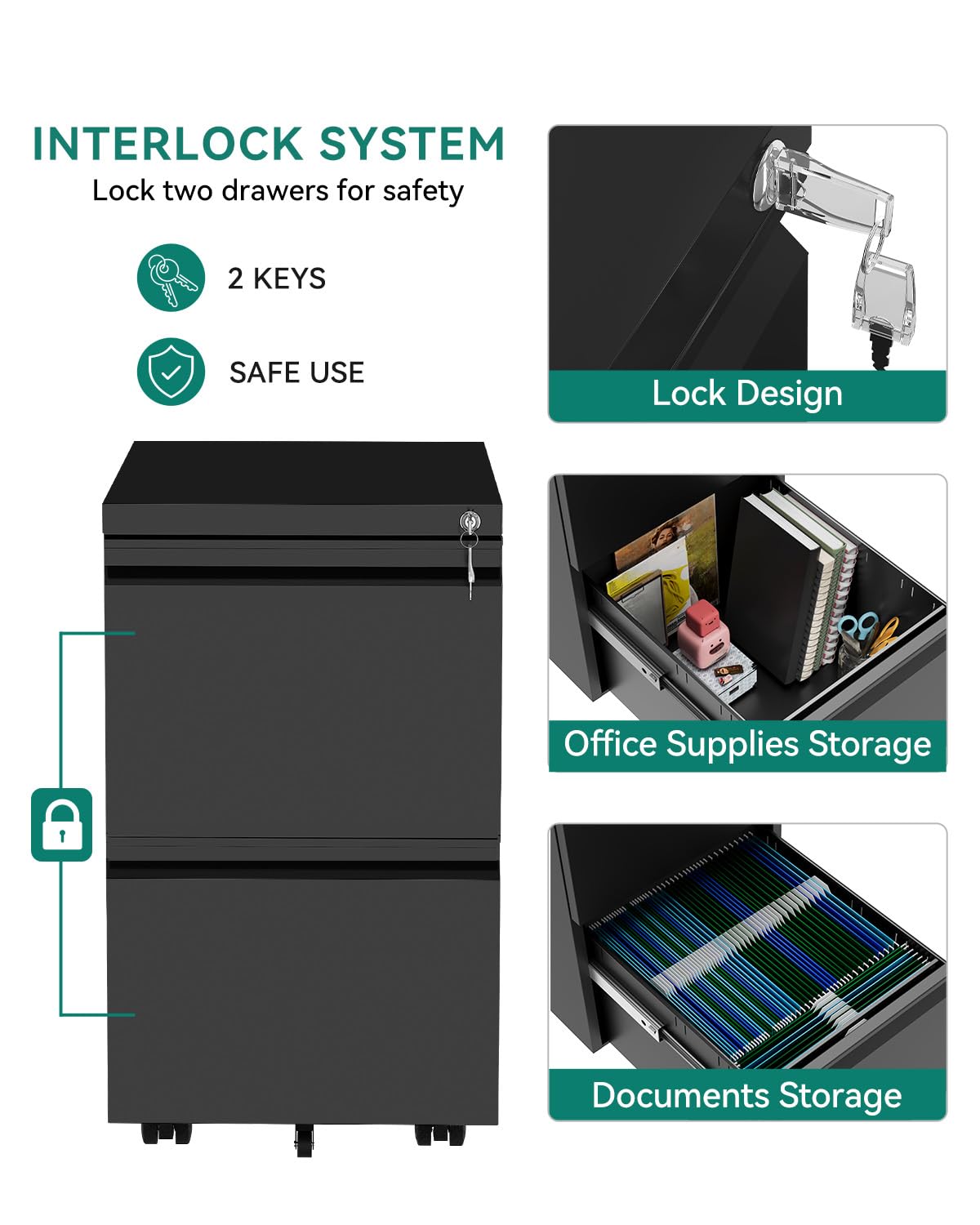 "DURABLE & LOCKABLE - Made of high-quality steel, the fireproof file cabinet is durable and sturdy, allowing a printer to be placed on top without dents for long-term use. The lockable file cabinet with 1 lock and 2 keys keeps your data private and secure.",