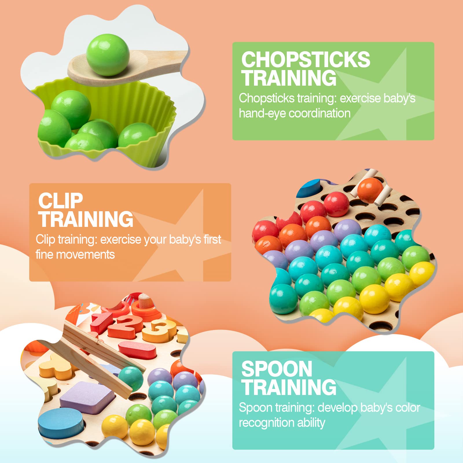 YLSCI Wooden Montessori Toy, Montessori Board Game, Fishing Game Wooden Clip Beads Board Game for Children from 3 years old, Large