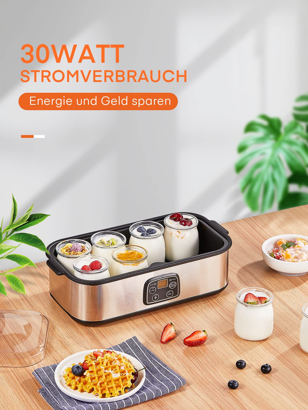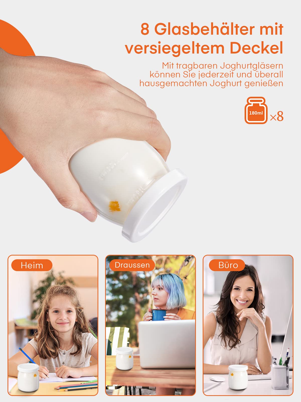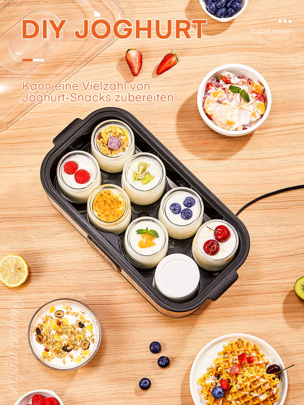 "Make various yogurt flavors: The high-powered electric yogurt maker comes with 8 x 6 oz reusable jars, allowing you to turn milk into delicious homemade yogurt. Get creative and try different yogurt textures like plain yogurt, Greek or French yogurt, and top them with your favorite fruits and nuts.