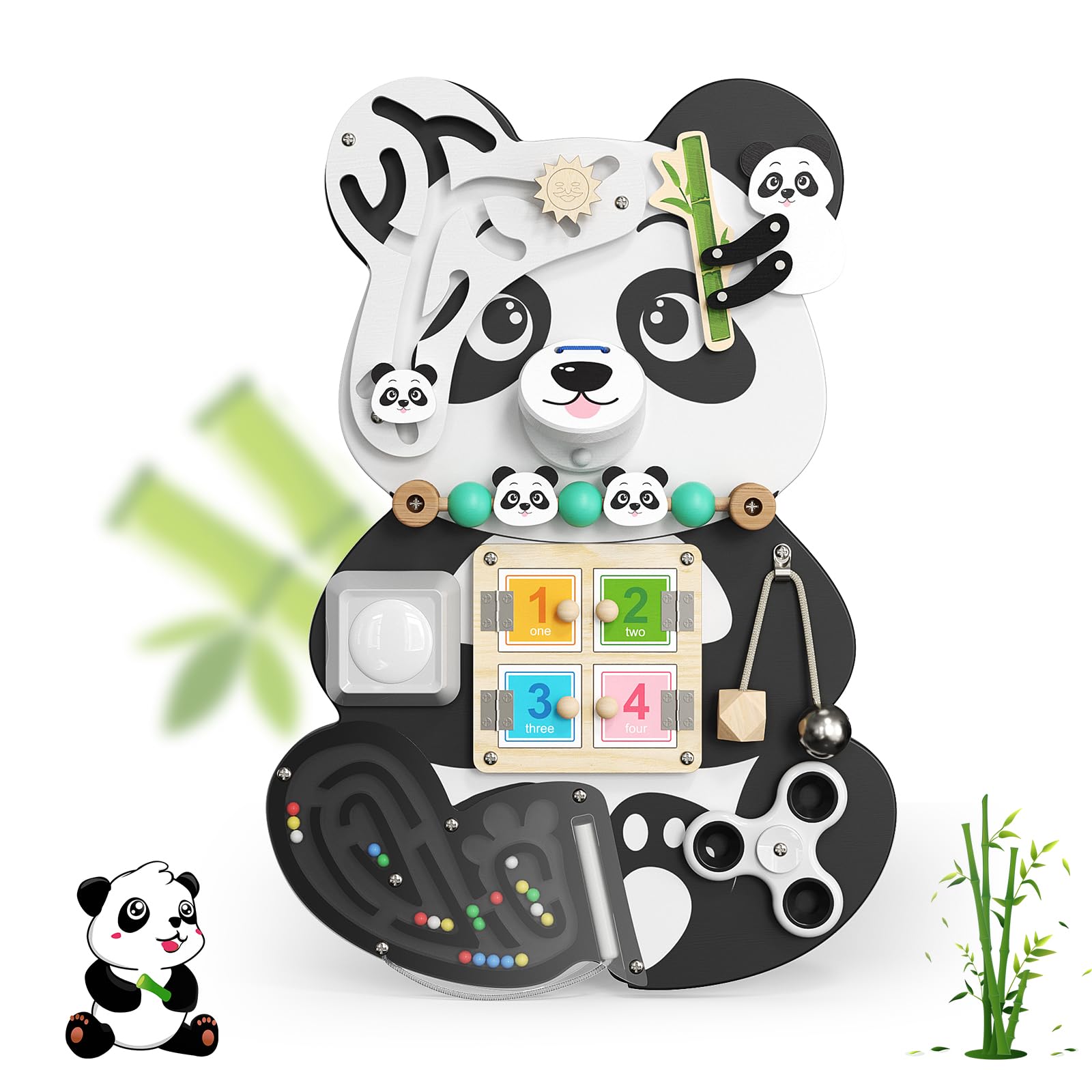 Yontwe Montessori Busy Board, sensory learning board for fine motor skills, handcrafted wooden sensory activity board, early education toy.