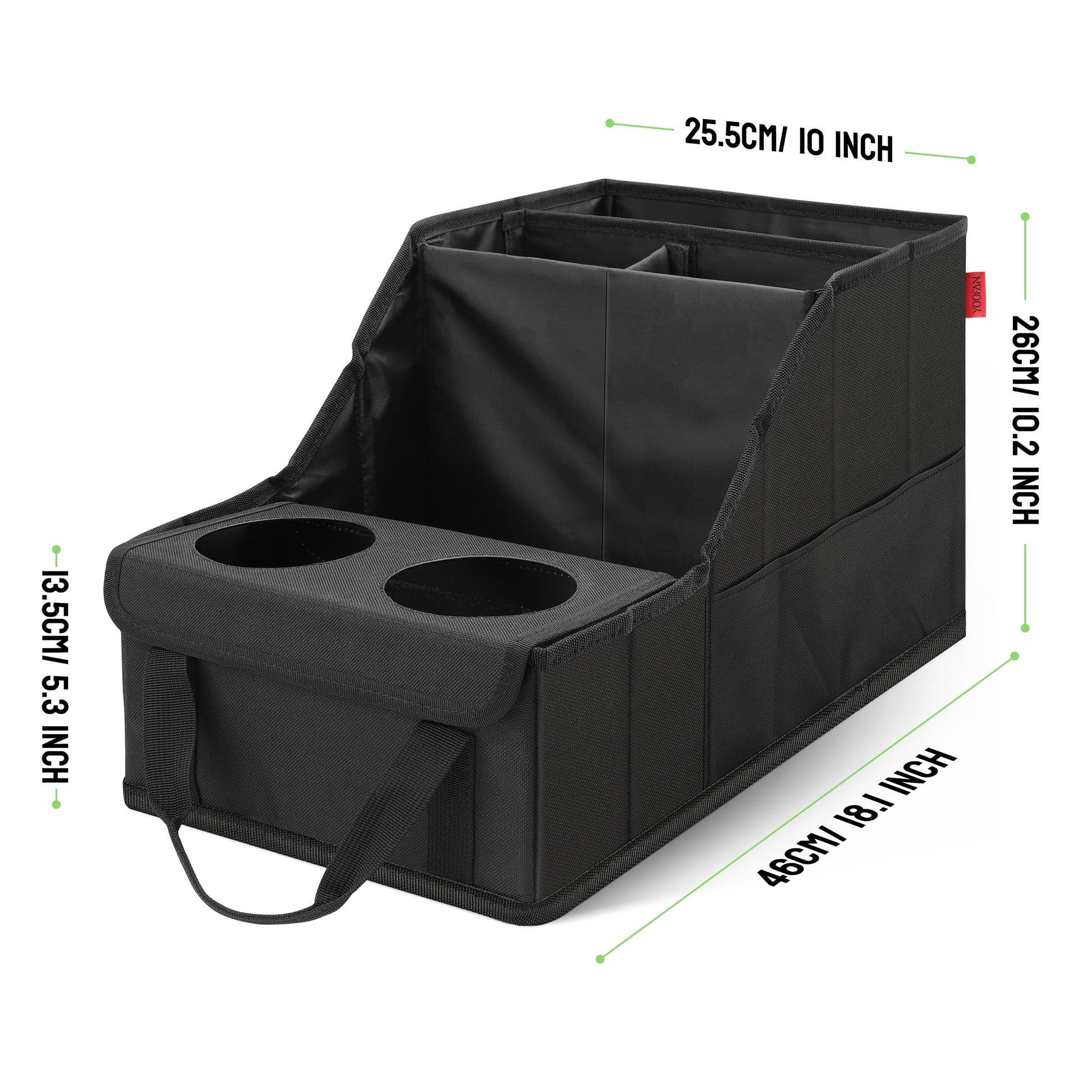 ["[Organizer with 2 cup holders] The YOOFAN backseat car seat organizer is equipped with two cup holders, so you and your passengers can conveniently store drinks while on the go.",