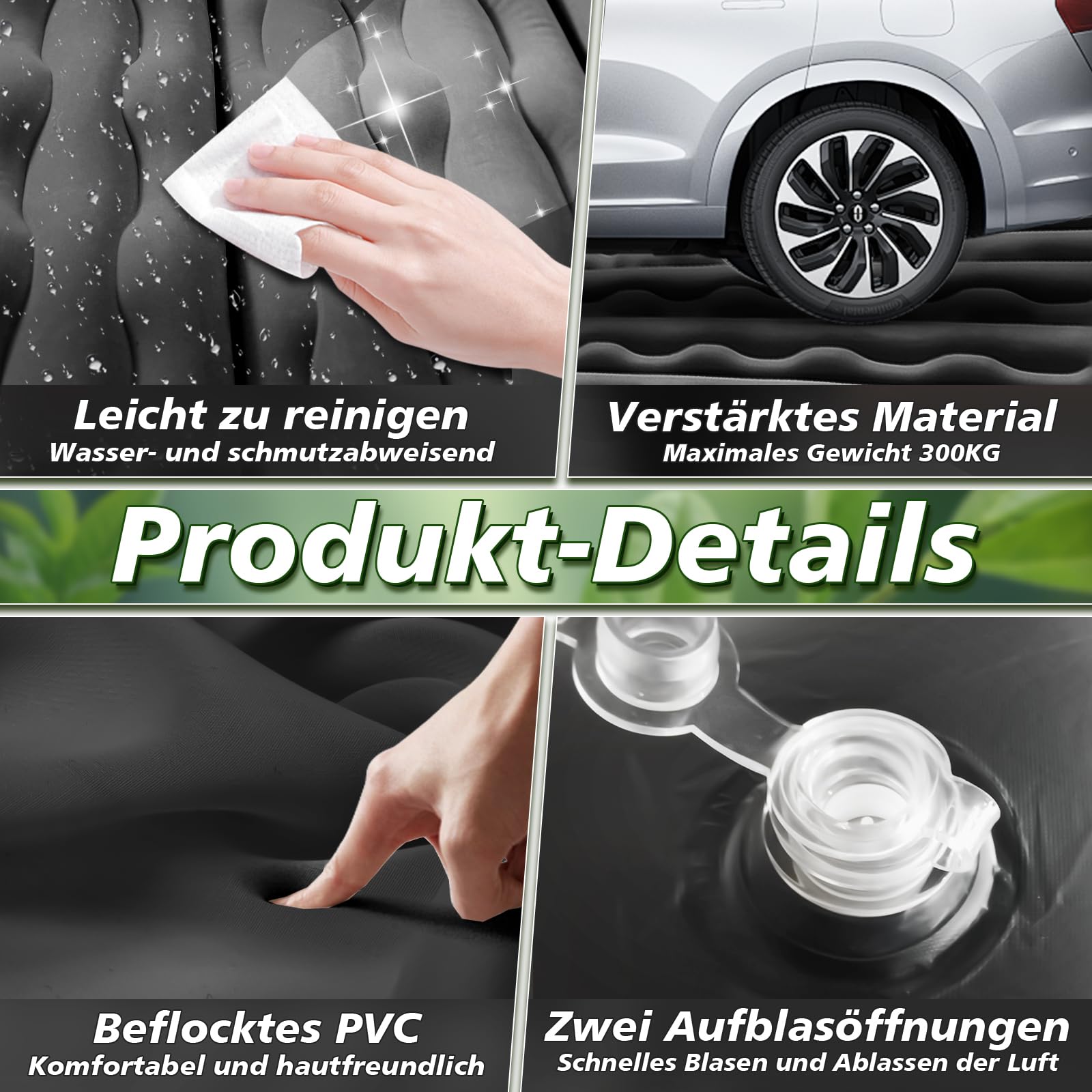 🌈【Quick Inflation】: The SUV car mattress comes with an air pump and 3 types of funnels for inflation, with a double air valve to ensure easy handling during inflation and deflation. With the air pump, the air mattress can be inflated or deflated in just 5-8 minutes and adjusted to the desired firmness.