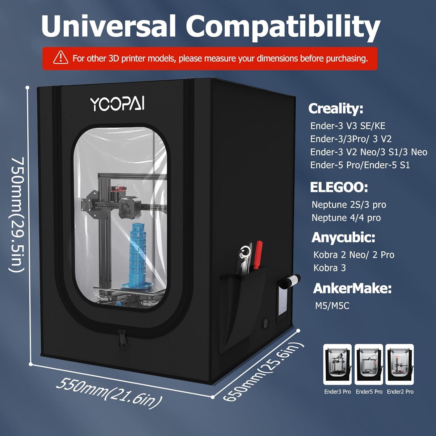 YOOPAI 3D Printer Enclosure for Creality Ender 3/ Ender 3 V2/ Ender 3 Pro/ Anycubic/ Elegoo 3D Printers and More, Fireproof & Dustproof Tent Constant Temperature 3D Printer Cover 550*650*750 mm.