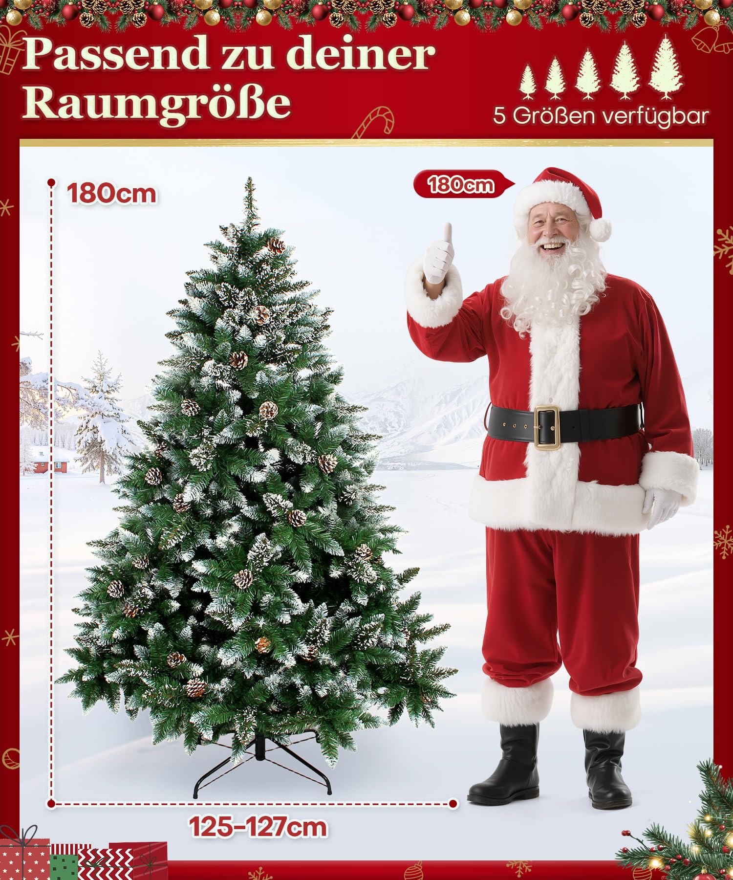 "180 cm with 930 tips, Real pine cones: The exclusive ultra simulation design: from the needles with white snow powder a whole branch is formed, the leaves are textured. Christmas tree with a height of 180 cm has the number of pine needles up to approx. 930 tips. The long and dense pine needles with real pine cones are decorative"