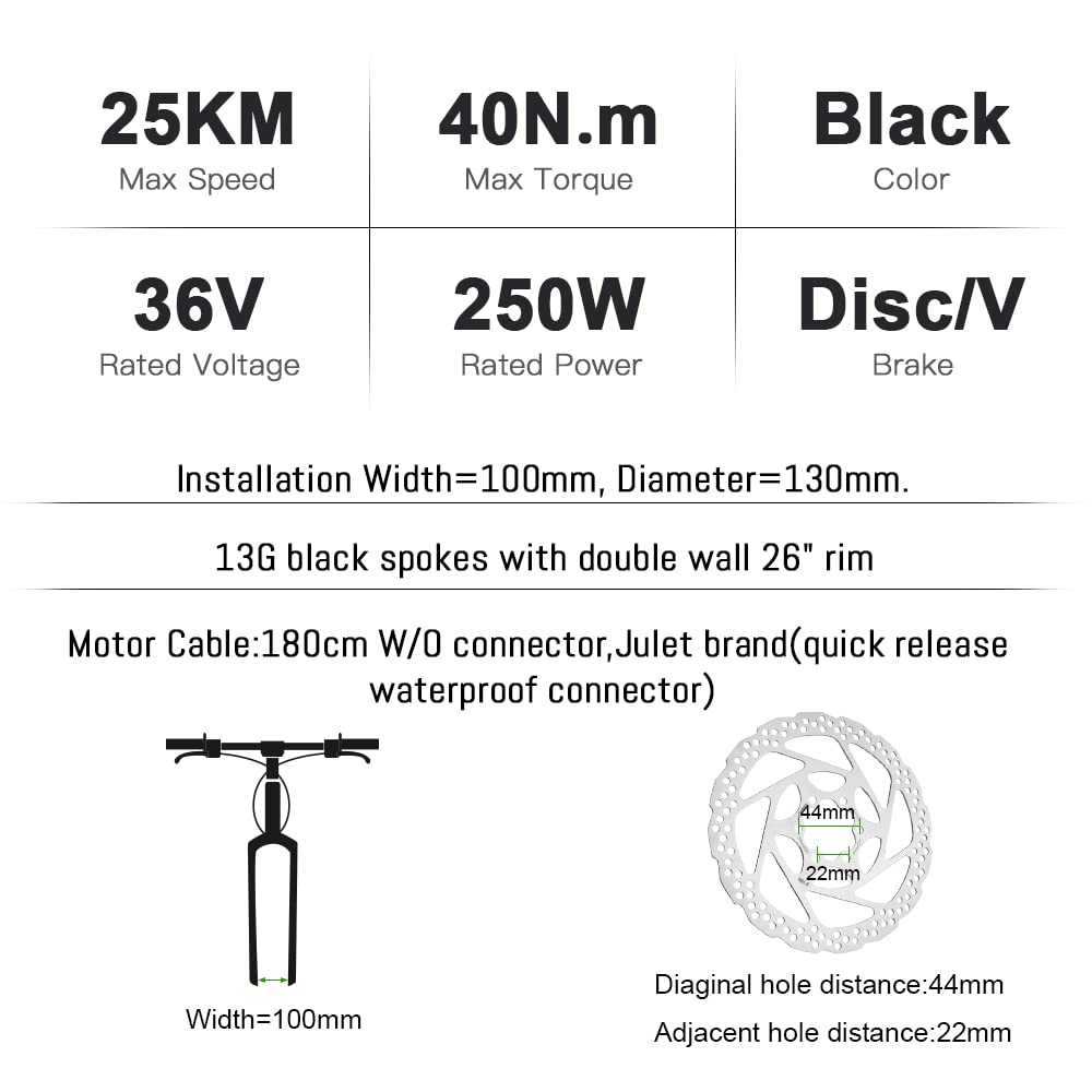 ["AKM 250W Brushless Motor】YOSEPOWER conversion kit is powered by a brushless geared motor, low noise, with a winning reputation for performance and durability. You can easily cross any difficult terrain and reach your destination while enjoying the journey. Perfect for daily use, commuting, and longer day trips. Your FIRST choice for traveling on city streets!","【Certification and Warranty】CE, ROHS certified. All kits have been fully tested before leaving the factory and are qualified for delivery. Motor: 18-month warranty. Accessories: 12-month warranty. 30-day no reason return from purchase date. In addition to the warranty, we continue to provide technical guidance, and accessories can be replaced for a fee.","【Speed and Safety】Max speed around 25 km/h. Fixed speed ensures stability and safety during fast rides. The brake lever ensures power is cut off when braking. Providing a safe and enjoyable riding experience. The LCD display provides basic information for the rider. Has 5 levels of assist.","【Installation Notes】Suitable for city bikes, touring bikes, commuter bikes, and mountain bikes. The set is not suitable for "HOLLOWTECH II" and Hydraulic brakes. Complete accessories, installation video, German-English bilingual manual. Can be perfectly installed within an hour."]