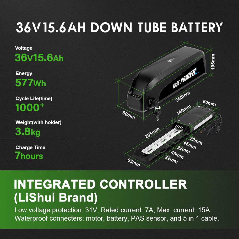 YOSE POWER Ebike Kit 36V250W 26" front motor bicycle E-Bike hub conversion kit with HL Plus 36V 15.6Ah battery DIY E-Bike LCD display