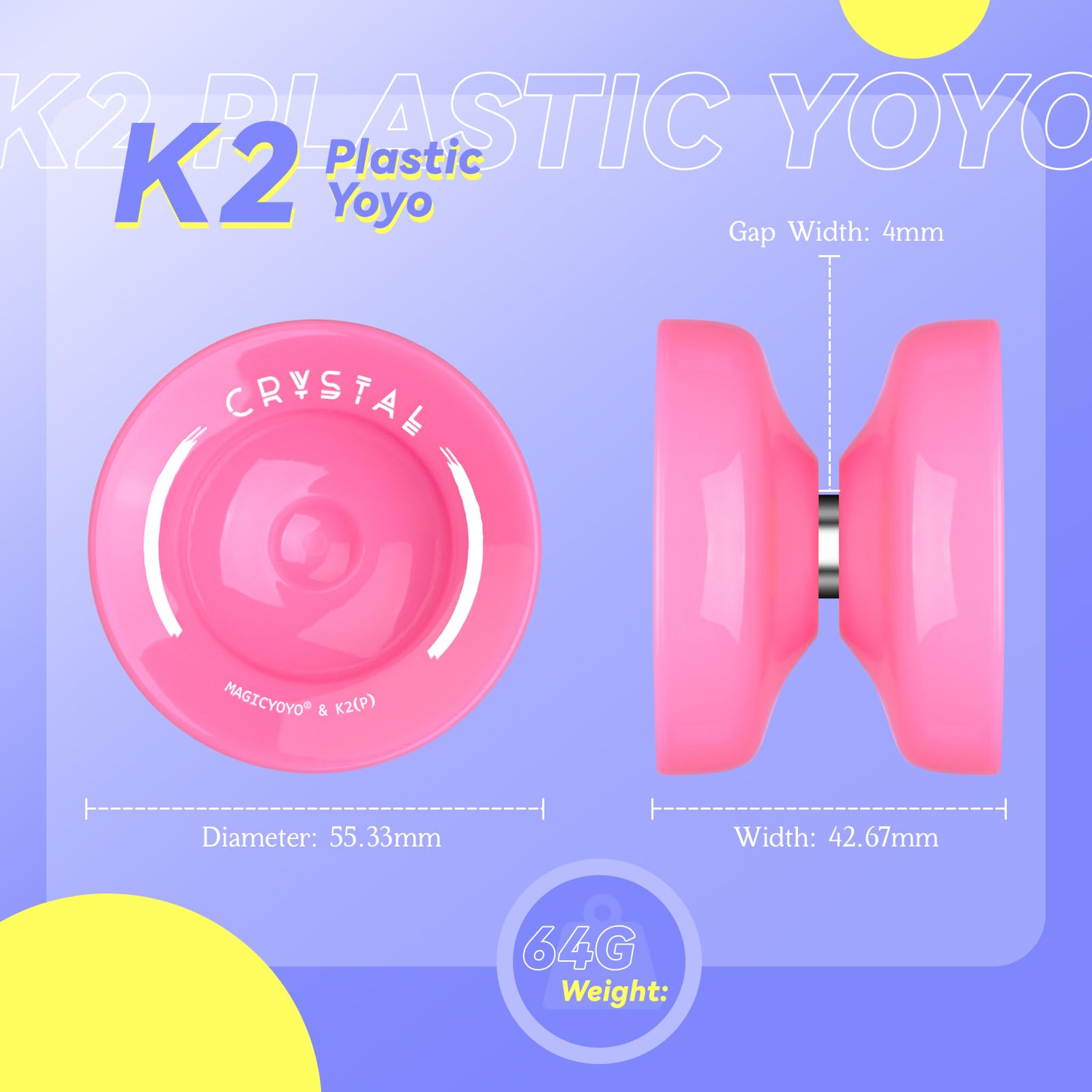 Wide range of color options: In addition to the beautiful pink color, the K2 Crystal is also available in a variety of other fascinating colors, including captivating color gradients, vibrant options, and sparkling star designs. Collect them all and create your own unique yo-yo collection!