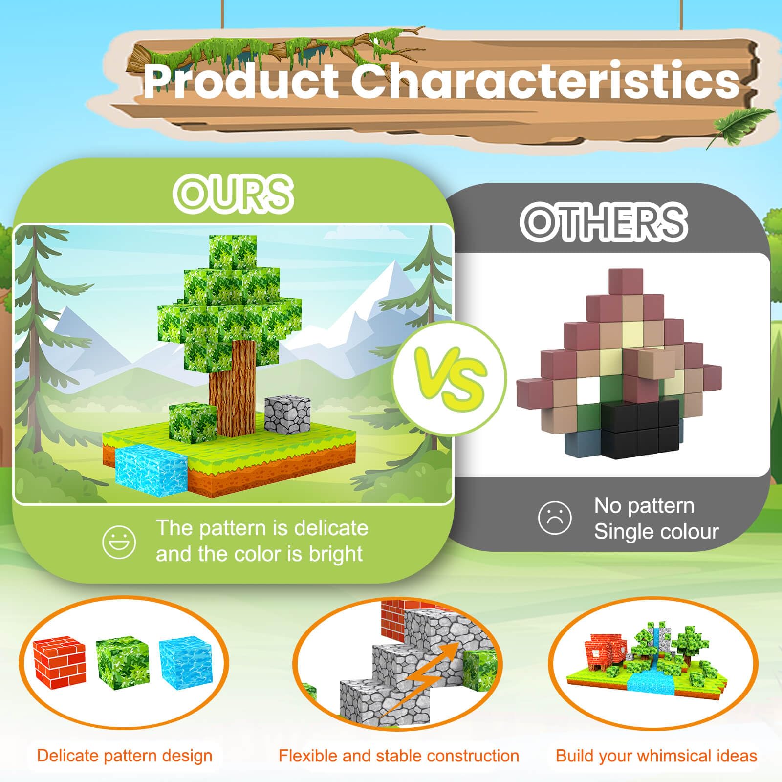YOTOY Magnetic Building Blocks Build Mine Magnets World Set Magnetic Toy Children's Toy Outdoor Gift for 3-8 Year Old Girls Boys Birthday Toy Child's Toy