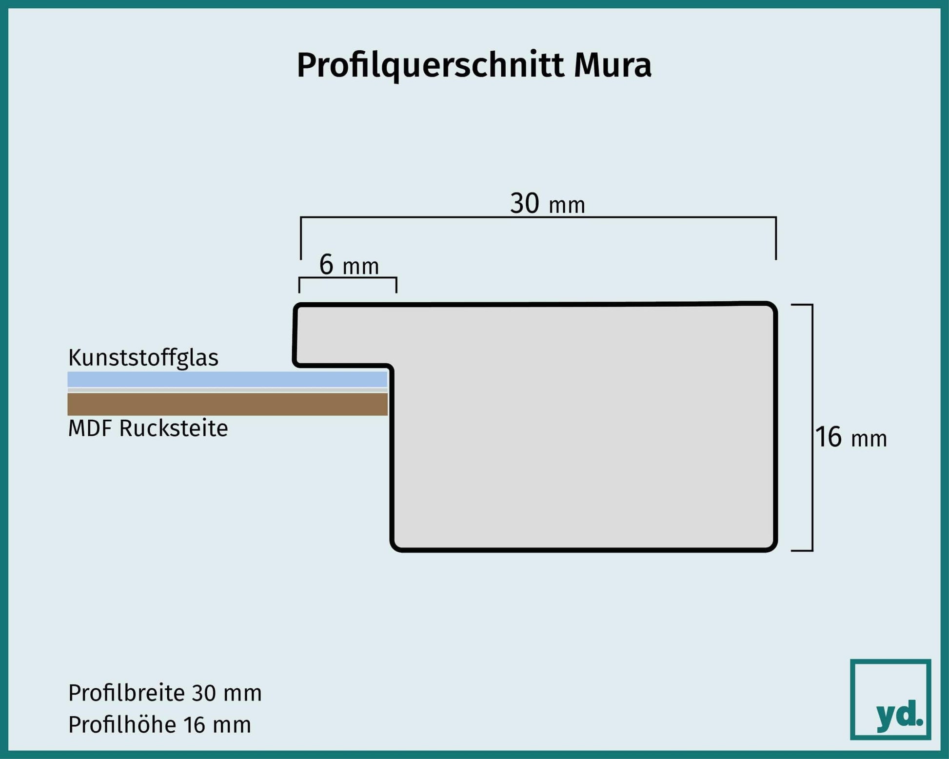 "MATERIAL: The picture frame is made of wood with anti-glare plastic glass (1 mm). The plastic glass is UV-resistant (no discoloration from sunlight) and anti-glare. The glass plate is protected on both sides by a scratch and transport protection film that needs to be removed. The picture frame has an MDF back panel. A mat or passepartout is not included in the delivery.",