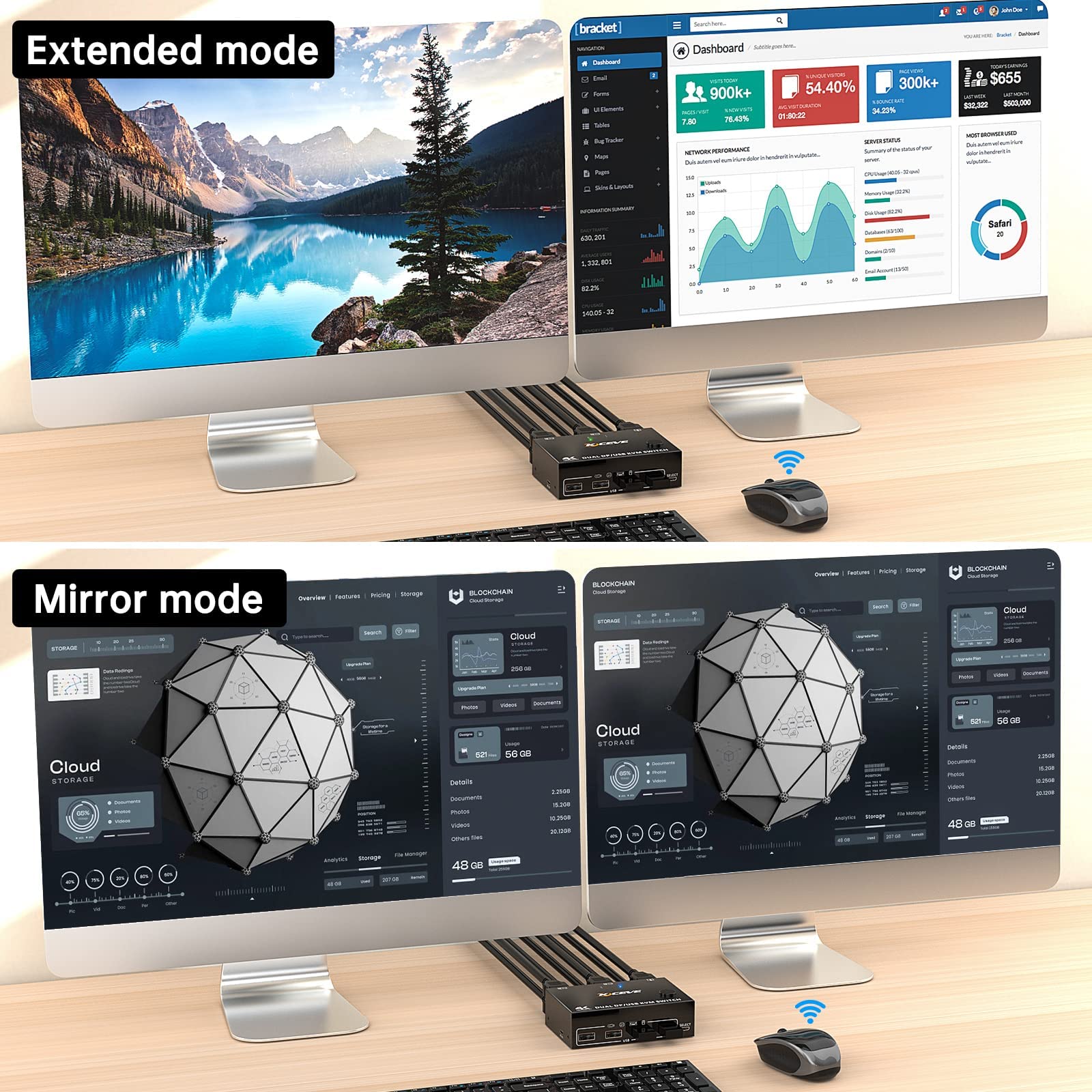 ["【KVM Switch Displayport 2 PC 2 Monitore】With this 2 PC 2 Monitor Displayport KVM Switch, you can control 2 computers with just one set of controls (monitor, wireless mouse, keyboard, printer), supporting webcams. You can freely switch between the two displays. Press Windows+P to select either mirror mode or extended screen mode. Each PC requires 2 Displayport cables + 1 USB cable plugged into the kvm switches simultaneously","【KVM Switch Displayport 1.4 with 4 USB 2.0 Ports】YOUTINGHDAV Dual Monitor KVM switch displayport 1.4 with 4 built-in USB 2.0 ports, allowing 2 computers to share 2 displays and 4 USB devices without unplugging, securely identifying wireless keyboard, mouse, printer, scanner, and other USB devices. Compatible with USB 2.0/1.1 devices. Save desk space, keep your desk neat, and make your work and life easier and more efficient","【Ultra HD 8K@30Hz / 4K@144Hz Visual Enjoyment】KVM Switch 2 PC 2 monitors Adaptive DisplayPort 1.4. DP USB Switch supports high resolution up to 8K@30Hz, 4K@120Hz, 4K@60Hz, 3440x1440@144Hz, 2K@120Hz, 1080P and below. Also works with Ultra Wide Monitors. Final resolution depends on monitors, graphics card, cables, adapters. Please note: Using 8K cables solves flickering and black screen issues","【Dual Monitor KVM Switch with 2 Switching Methods】Freely switch between 2 computers by pressing the front panel key Switch or the 1.5m cable remote control. LED lights indicate which computer is active. Plug-and-Play. No driver software required. KVM Switch Displayport powered by DC 5V power. Supports USB-C to Displayport adapter, doesn't support HDMI to DP. Widely used in home theater, office, multimedia teaching, meeting room, game room, etc.","【KVM Switch 2 PC 2 Monitors with Universal Compatibility】KVM Switch DisplayPort 144Hz compatible with most DP inputs, such as PC, laptop, TV box, Xbox One, PS3, PS4, PS5. Excellent compatibility for Windows 10/8/8.1/7/XP/Vista, Mac OS, Linux, Chrome. Package includes 1 DP KVM Switch, 2 USB cables, 1 Wired remote, 1 x manual. 12-month customer service for the KVM switch. If you encounter any issues, please contact me first to resolve it for you"]