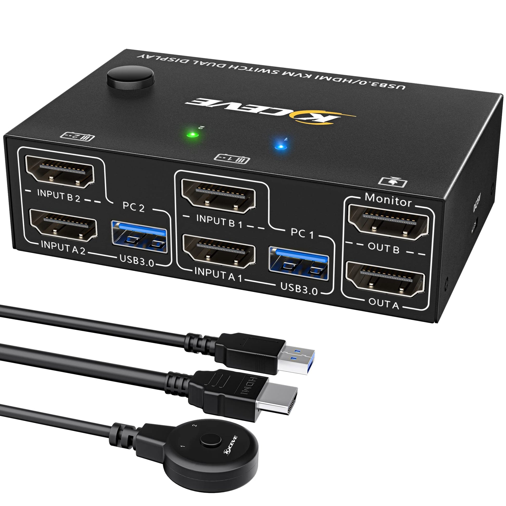 ["【USB 3.0 HDMI 2.0 KVM Switch 2 PC 2 Monitore】 YOUTINGHDAV dual monitor KVM Switch allows you to control 2 PCs with just one set of wireless mouse, keyboard, printer, scanner, and monitors, supports webcams. You can freely switch between 2 monitors by pressing "Windows+P" to select mirror mode or extended screen mode. Each PC needs 2 HDMI cables + 1 USB cable to connect to the KVM switch","【KVM Switch 2 Monitors with 4 USB 3.0 Ports up to 5 Gbps】Dual Monitor KVM switch for 2 computers sharing 2 monitors and 4 USB 3.0 devices, without unplugging, and securely identify wireless keyboards, mice, printers, scanners, and other USB devices. The HDMI USB 3.0 Switch supports 5 Gbps and is backward compatible with USB 2.0/1.1 devices. Compliant with HDMI 2.0, HDCP2.2","【KVM Switch 2 PC 2 Monitors supports Ultra HD 4K@60Hz】2 PC 2 Monitor Switch supports 4K@60Hz, 4K@30Hz, 2K@144Hz, 3D 1920x1080@60Hz backward compatibility. KVM Switch 2 monitors supports input terminal for connecting 2 PCs with different resolutions. Please make sure your PC, screen, and cables support 4K. Please note: Using 8K cables will solve the problem of flickering and black screens.","【USB 3.0 KVM Switch 2 Monitors supports EDID simulation】KVM Switch HDMI USB 3.0 features the EDID function of analog emulation, automatically adjusting and storing the resolution and refresh rate. Switch screens without damaging the original window. With "on and off" switch for you to use freely.","【USB KVM Switch with 2 Switching Methods】Plug and Play. Switch freely between 2 PCs via button switch or 1.5m cable remote control (included). LED lights indicate which computer is active. Please connect a 5V DC power supply.","【Wide Compatibility and Wide Application】KVM switches support a variety of HDMI input devices or sources, such as computers, laptops, TV boxes, Apple TV, PS3, PS4, PS5, Blu-ray players, projectors. No additional driver software required. This KVM switch 2 monitors HDMI is compatible with Windows 7/8/10/11/XP/Vista, Mac OS, Linux, and Chrome systems. Widely used in offices, business seminars, multimedia teaching, home theater, scientific research tests, etc","【Stable Connection & KVM Switch 2 PC 2 Monitors Customer Service】USB 3.0 KVM Switch 2 Port built-in high-performance chip in metal case. Size: 10 x 6.5 x 3 cm, Net weight: 190g. Package includes Dual Monitor KVM Switch HDMI, 2 USB 3.0 cables, 2 HDMI cables, 1 remote control cable, 1 user manual, all cables are 1.5m long. The KVM switch comes with a 12-month customer service. If you encounter a problem, please contact me first to resolve it."]