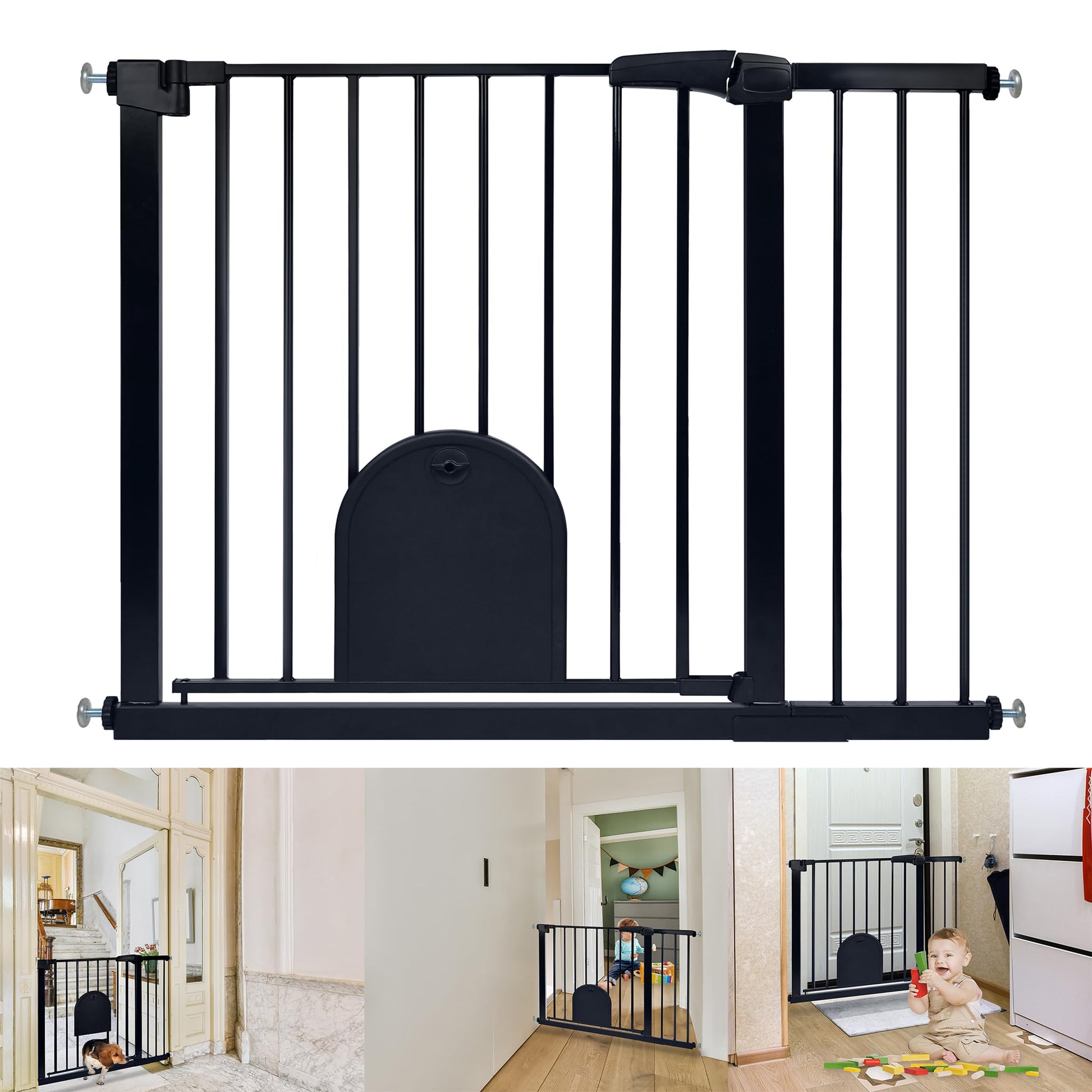["🐾【Pet Sliding Door】The sliding door is specially designed for pets and features a built-in dog-safe barrier measuring 27.5 x 24 cm, which can be locked and unlocked by turning the knob: clockwise to adjust the height and counterclockwise to lock. You can adjust the opening to fit your pet's size, allowing your pet to come in and out easily while keeping your baby safe from accidentally escaping.","🔒【No drilling】The child safety gate is clamped between doors or stairs using four adjustable screws, eliminating the need for drilling holes. The safety gates attached to the door frames of the rooms are easy to operate and provide children with all-around protection.","🔄【Autoclose and Keep-Open Function】Automatic rebound design. If the opening angle is less than 90 degrees, the door will close by itself. If the opening angle is 90°, the door will stay open. The safety gate can be opened 180º in both directions, allowing you to enter and exit without obstruction.","👶【With Child Safety Lock】The safety gate has a manual locking mechanism and reliably locks into the child-safe closure. Only adults can operate the safety gate. To unlock the door, you must simultaneously press the top and bottom parts of the lock. It automatically locks into the child-safe closure when closing.","🛠️【Easy Installation, Strong Applicability】Ideal for kitchen, hallway, staircase, balcony, bedroom, bathroom, or basement. This safety gate provides maximum protection for children in everyday life, saving time and allowing for flexible use."]