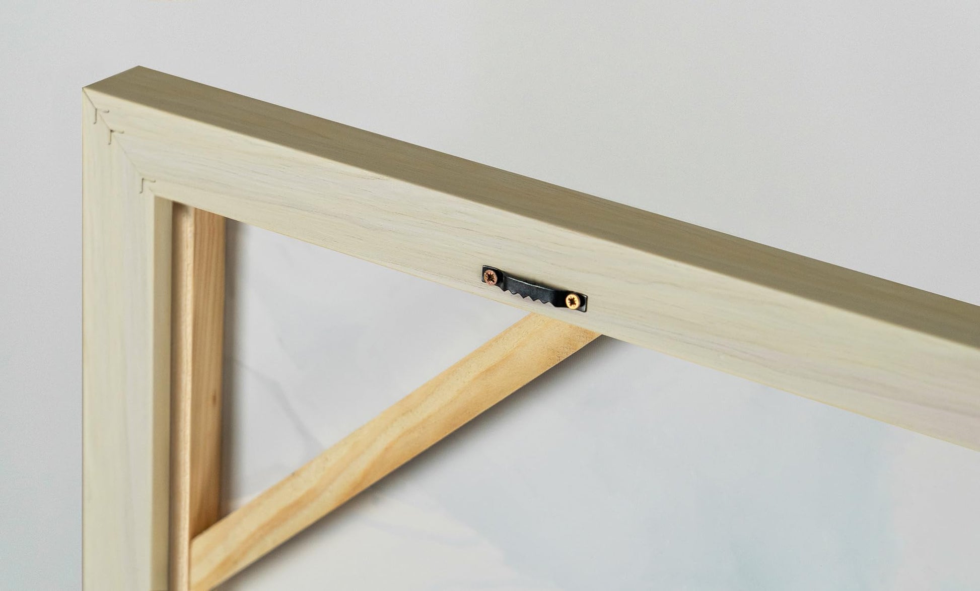 The stretcher frame comes with 2 metal hangers already attached - so you can hang the painting directly after unpacking.