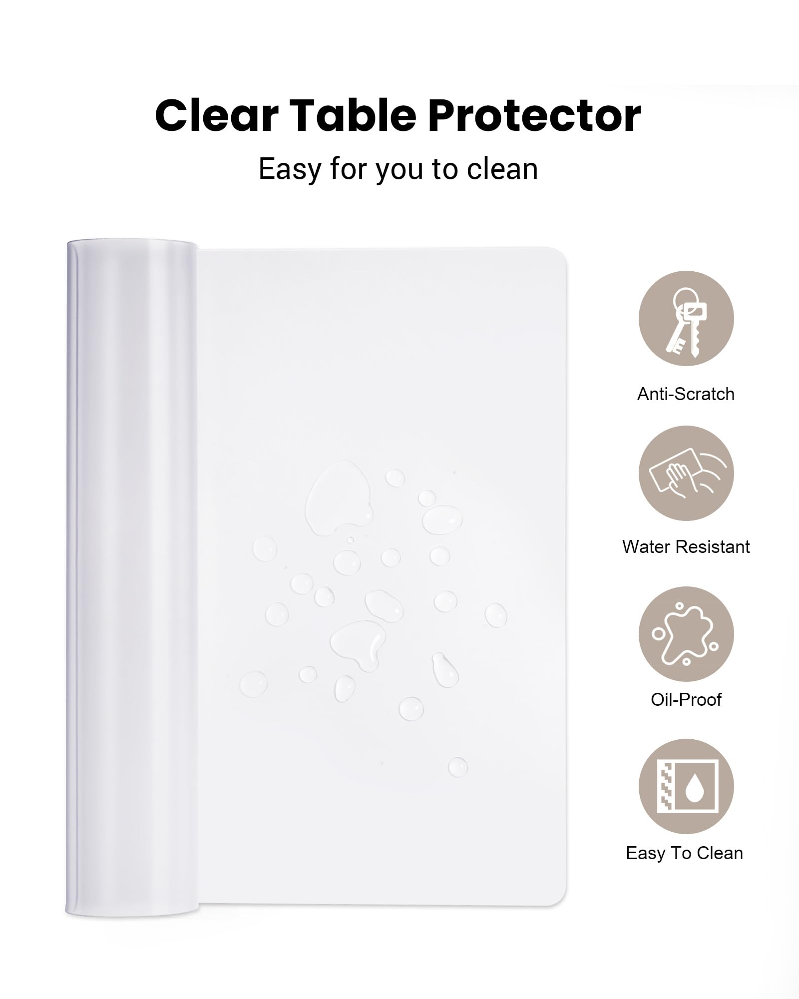 Transparent desk protection: Our new desk protector is scratch-resistant, scald-proof, waterproof, and oil-resistant. Transparent stickers are included in the package for you to attach to the four corners to keep the desk mat non-slip. Rounded edge design better protects your forearms and elbows from punctures or scratches.