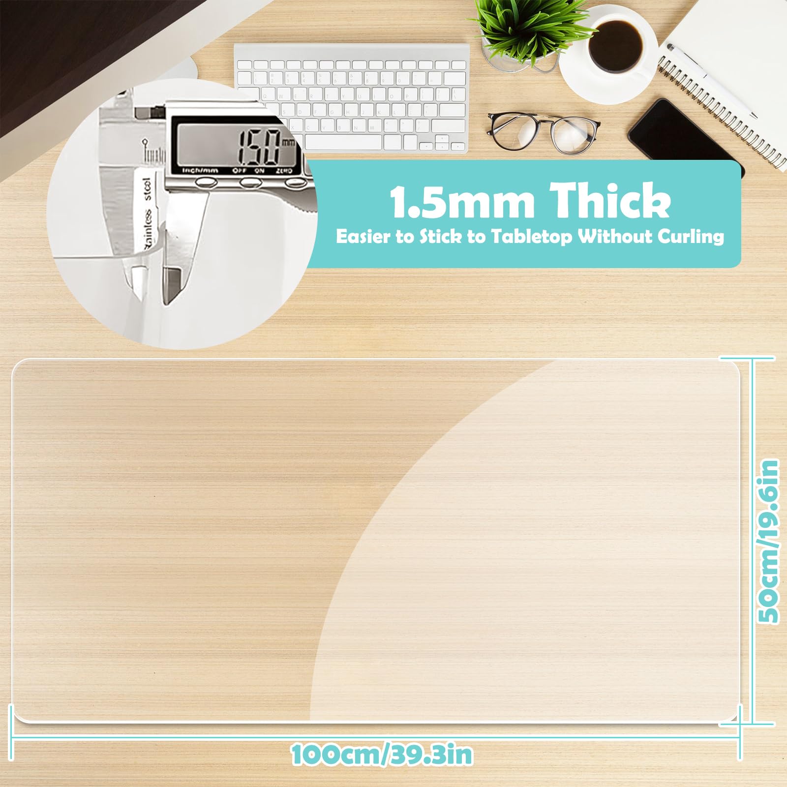 ["NON-SLIP DESK PAD: Transparent desk pad measuring 39.37 inches x 19.68 inches, thickness: 0.06 inches. Protects your desk or furniture surface from scratches, scuffs, stains, and spills."]