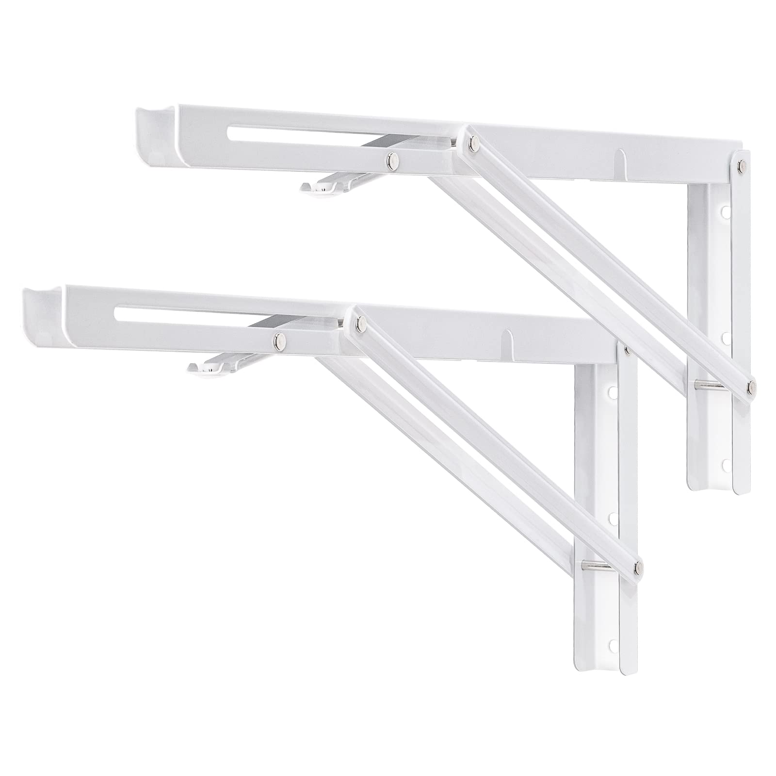 YUMORE Folding Shelf Brackets Heavy Duty 400mm White - 2 Pcs Metal Folding Brackets Wall Table Supports Folding Shelf Brackets for DIY Folding tables Benches Shelves Space-saving, Max Load 330lbs