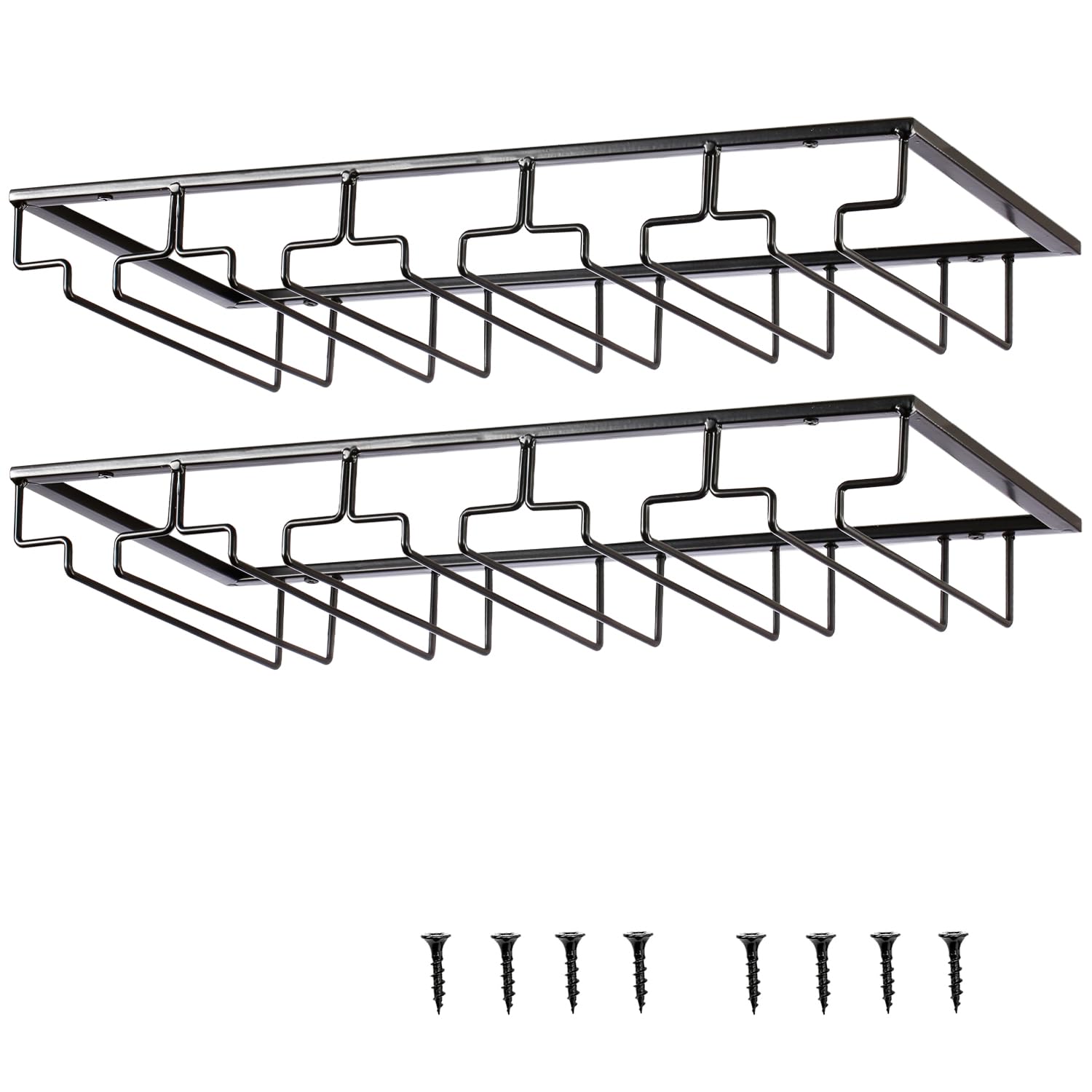 YunNasi 2 Pieces 5 Row Wine Glass Holder Metal Glass Rack Holder Under Cabinet with Screws Hanging Wine Glass Rack for Home Bar Kitchen Bar Pub Restaurant, Black