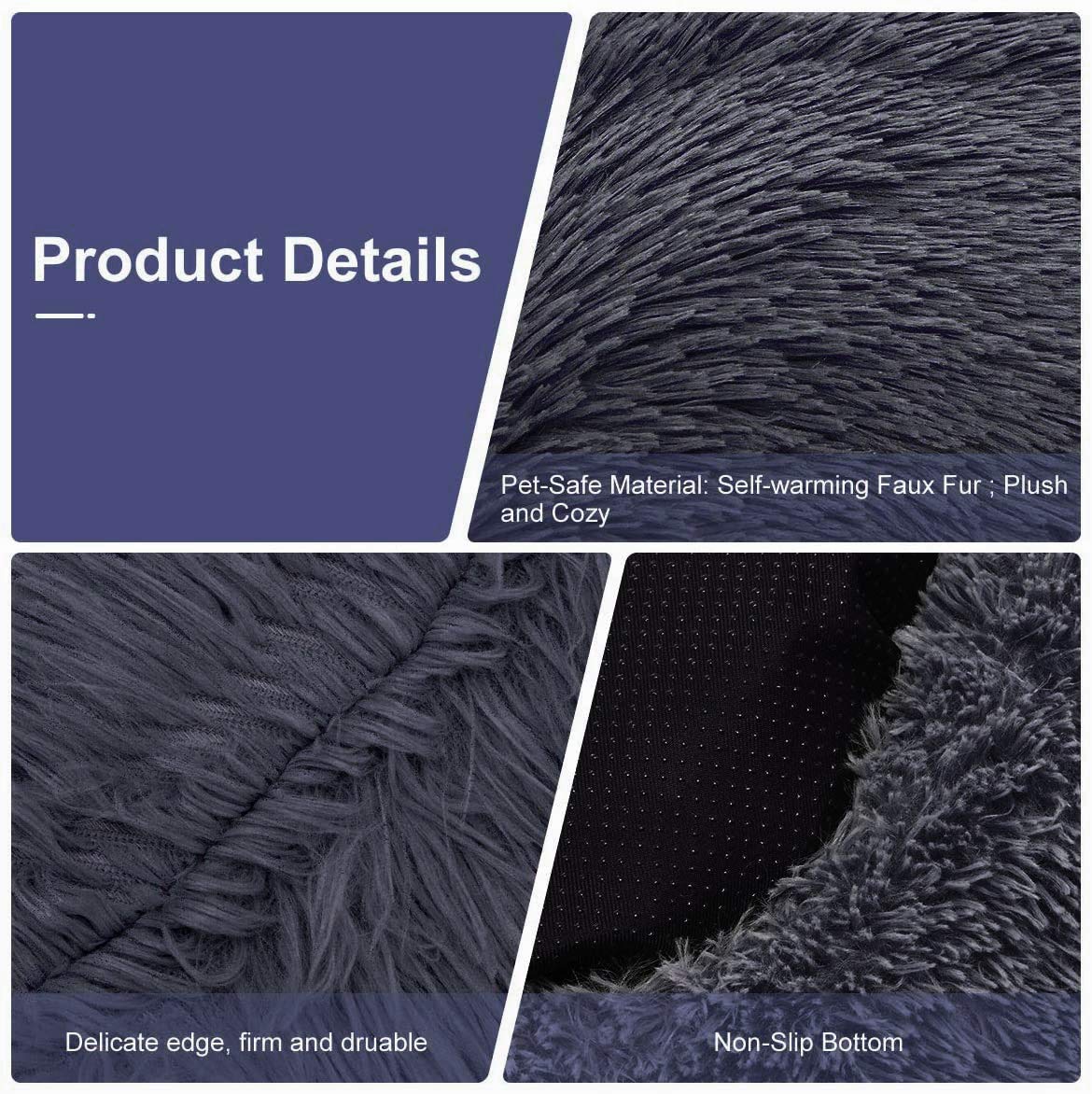 ["A cozy feeling - our fluffy dog bed reminiscent of a mother's fur! With deep creases for your pet to burrow into, the animals will get a full, restful sleep that your beloved will feel like sleeping in your protective arms.","Deep sleep - the raised edge creates a sense of security and provides head and neck support, perfect for pets who love to curl up! The raised edge creates a sense of security and provides head and neck support, while the super soft filling relieves joint and muscle pain.","High-quality materials - the outer layer is made of super soft and luxurious polyester material, the inner layer is filled with PP cotton, and the durable material, fluffy fabric keeps your kitten or puppy warm even during the deepest winter.","Machine washable - we recommend a gentle cycle and low heat drying. To avoid matting, it is important to thoroughly dry the bed immediately after washing in the dryer.","Non-slip safety floor - the bottom of the dog bed is made of non-slip, sticky beads and high-density fabric that is waterproof, slip-proof, and mold-proof. It keeps the pet bed in place and ensures worry-free placement on tile and wooden floors at home."]