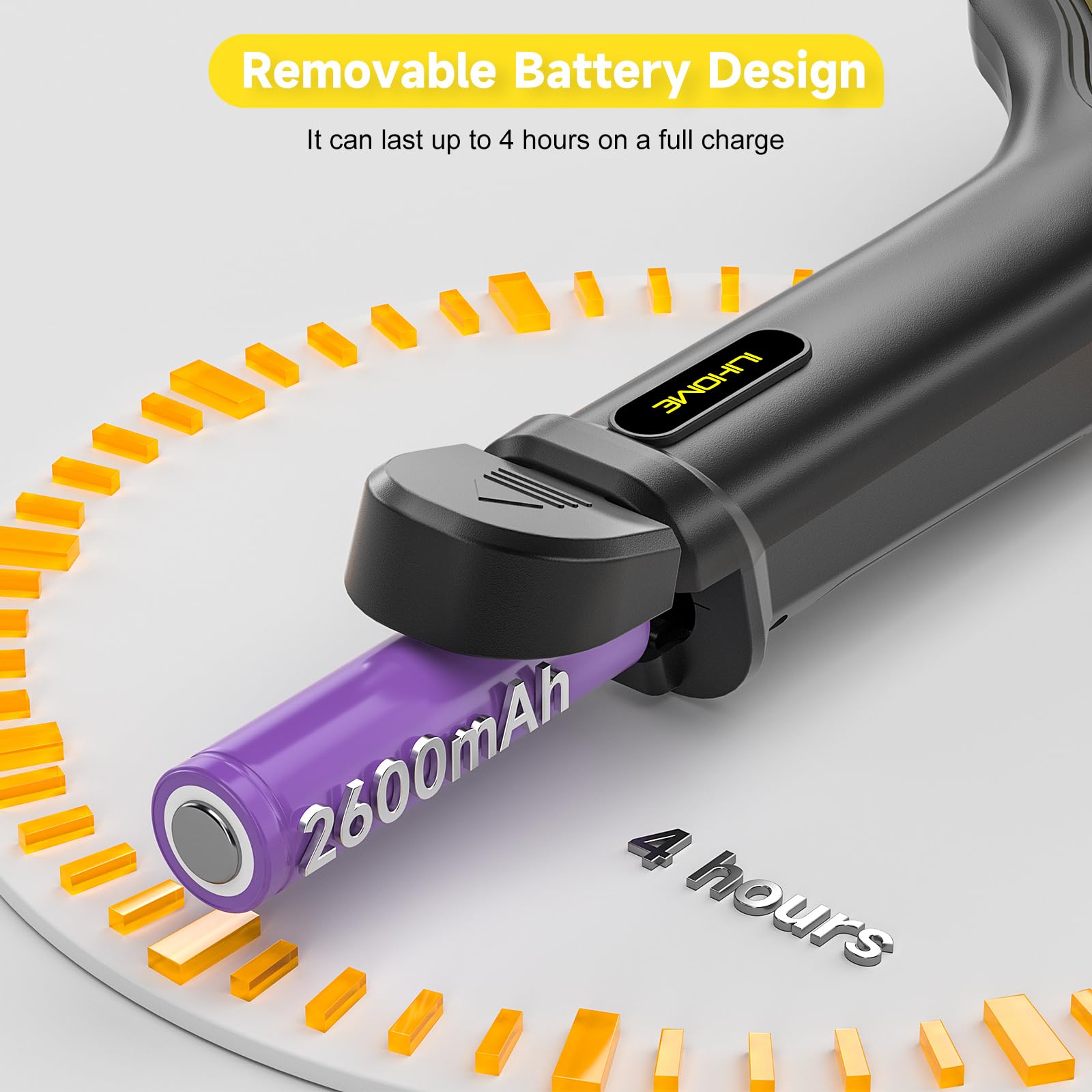 "Removable battery: Since the battery is a consumable item, we have designed the battery to be removable so that you can easily replace it. The product comes with a rechargeable 2000mAh battery that can be used for 4 hours on a full charge."