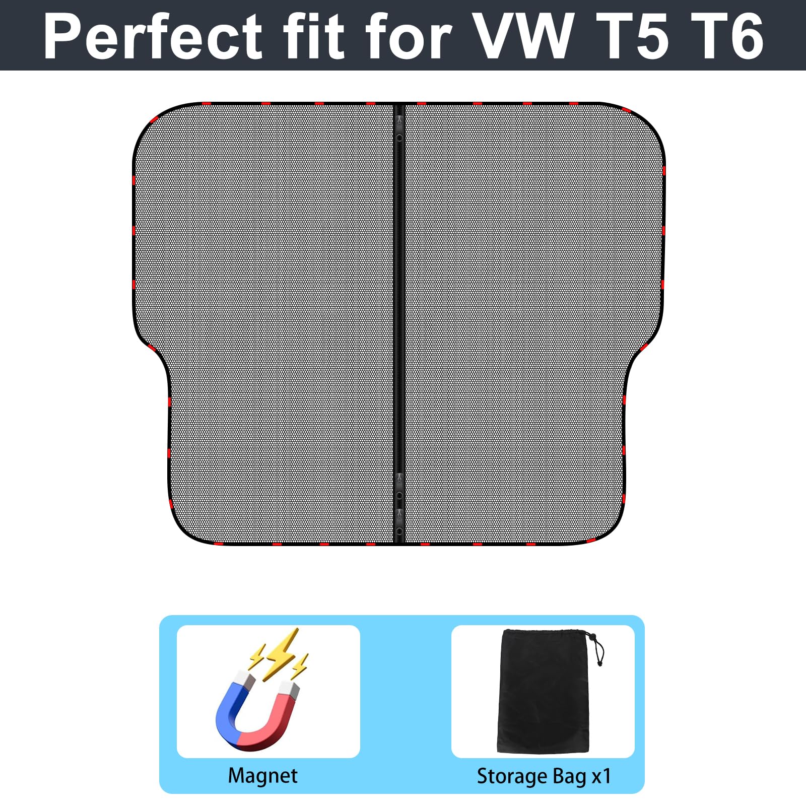 ["【Only suitable for VW T5 and T6】 -- Rear door shadow net anti-mosquito net can be opened from inside or outside, with 3 zippers that can be opened as needed, and can also be opened from the middle, very flexible and convenient","【High-quality material】 -- Made of high-density mesh, no need to worry about flying mosquitoes and insects. It prevents mosquitoes, but does not affect air circulation and allows you to have a natural view of the outdoor environment","【Essential for camping】 -- When camping, fishing, or traveling outdoors, this trunk mosquito net is the best choice. It not only protects you from mosquitoes, but also allows for free air circulation, so you won't feel hot and stuffy","【Easy installation】 -- There are magnets on the edges of the rear door, which can be easily attached to the car by simply approaching. When not in use, it can be folded and stored in a bag","【After-sales service】 -- Only suitable for VW T5 and T6. If you have any questions about the car rear door sunshade, please feel free to contact us, our service team will reply within 24 hours"]