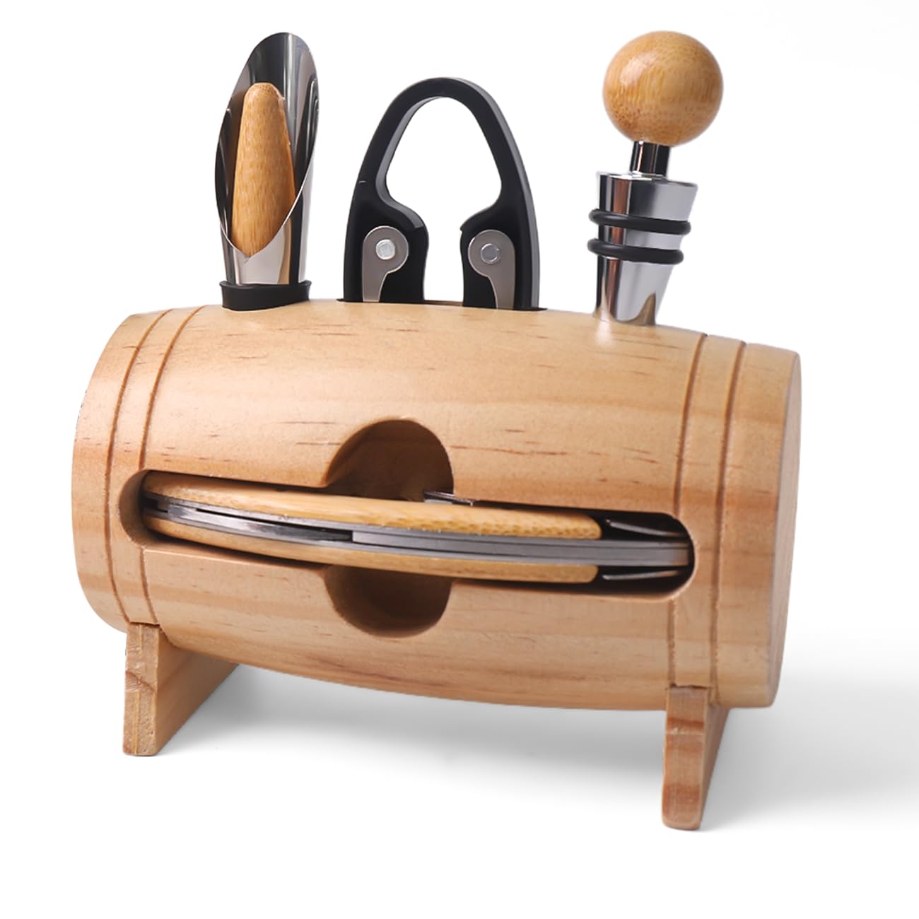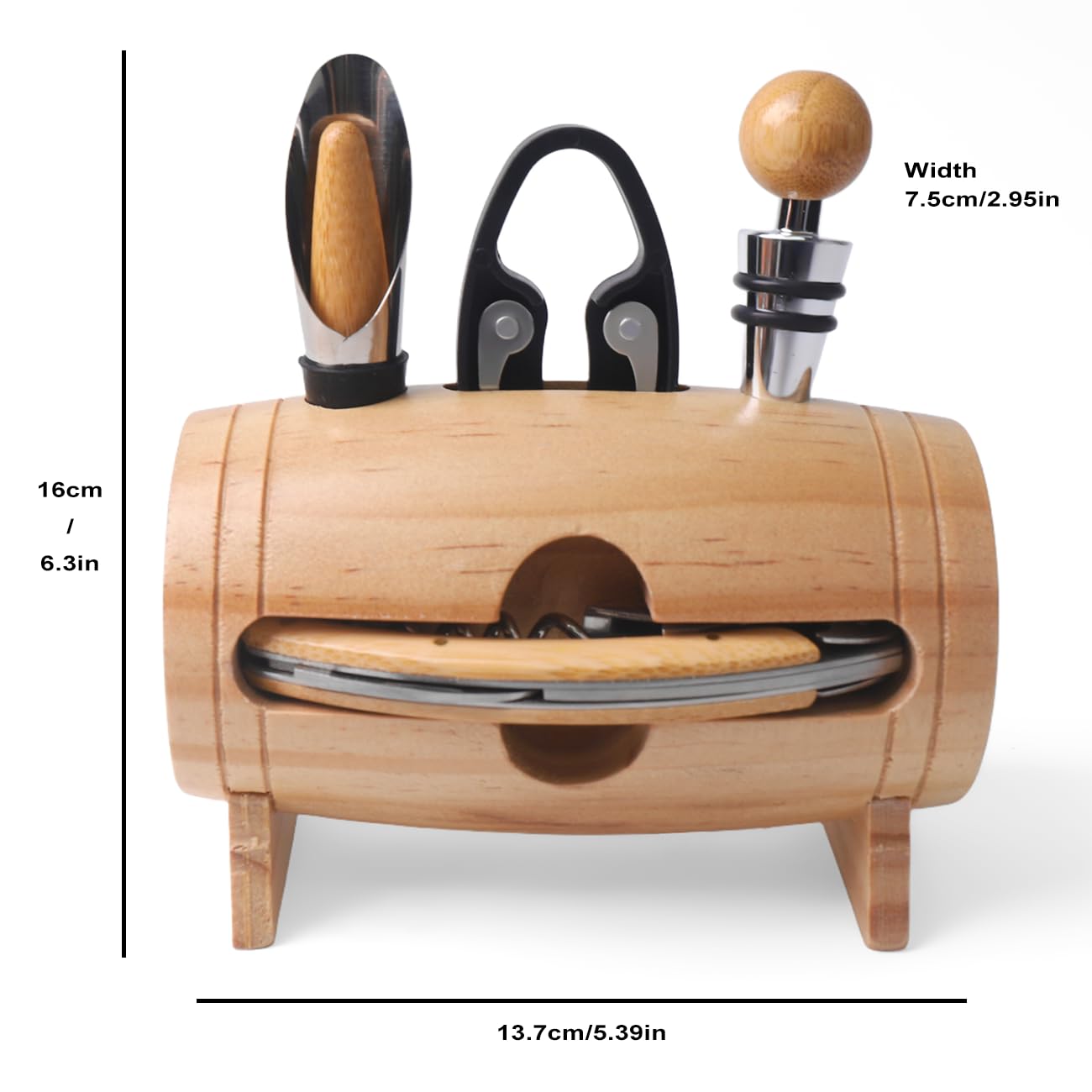 ZBPASL Barrel Shape Corkscrew Set, Wine Opener, Wine Sommelier Sets with bottle opener, Wine stoppers, Wine accessories gift set (Barrel 01)