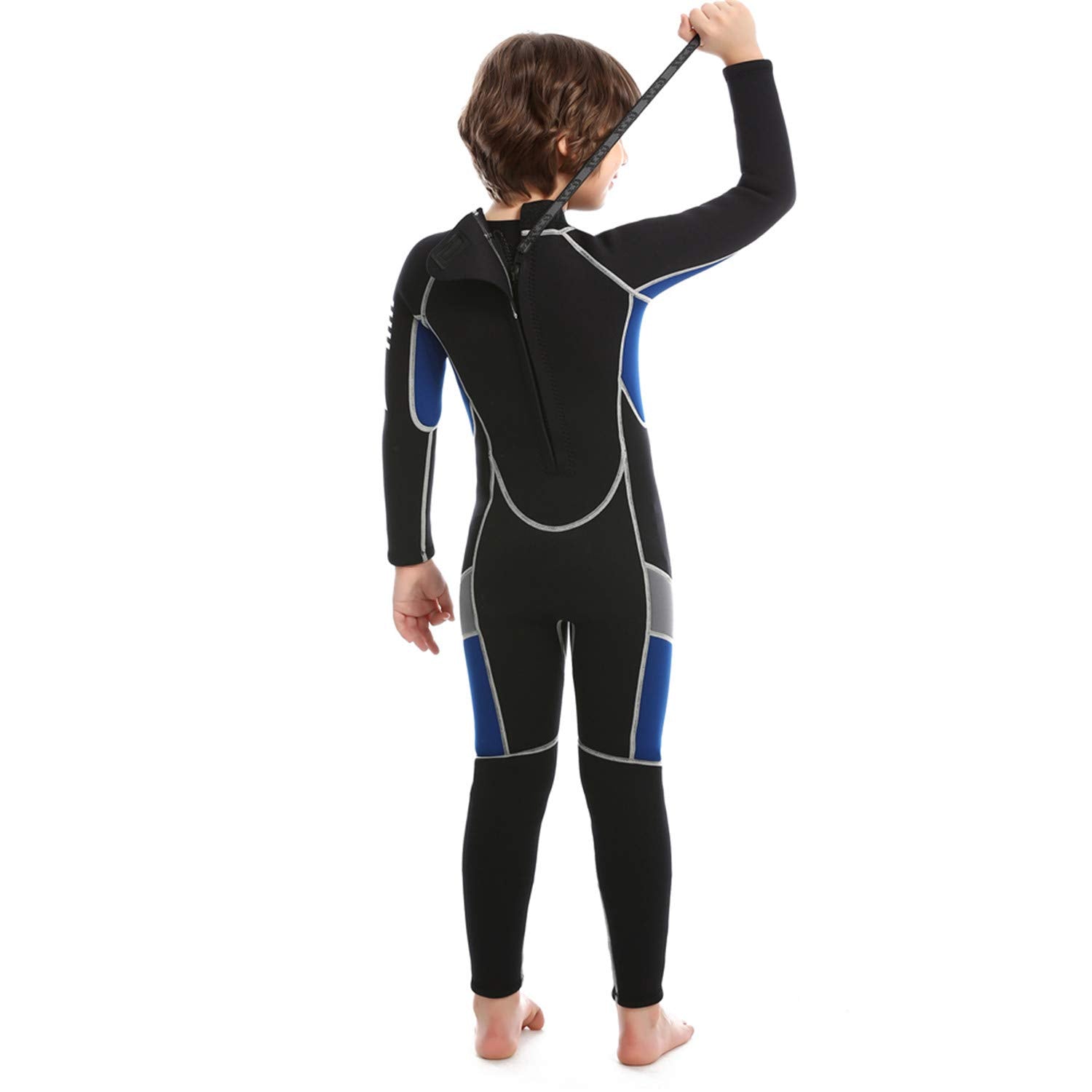 ZCCO Kids 2.5mm Neoprene Thermal Wetsuit, youth swimsuit for boys and girls with long sleeves for diving, swimming, surfing... (Blue, M)
