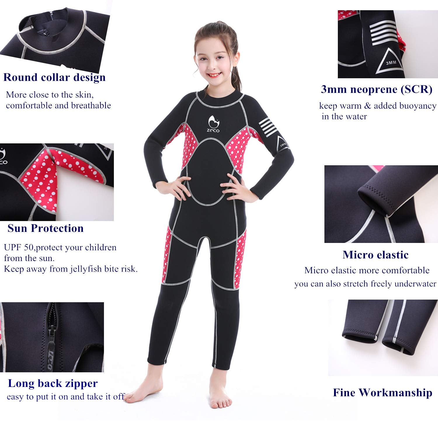 ["Special design for boys and girls: Our wetsuits are made of high-quality neoprene, providing primarily thermal insulation, buoyancy, UV protection, abrasion resistance, and protection from sea life bites.","2.5 mm Neoprene (SCR) Lycra: The wetsuit for teenagers uses the best SCR neoprene, keeping you warm and maintaining functionality during water activities.","UPF 50 Sun protection: Stops UV radiation, offering UPF 50+ sun protection for kids to enjoy various water sports without worries.","Long back zipper: The long zipper on the back works reliably and smoothly, allowing kids to put on and take off quickly.","Perfect for various water sports: Ideal for beach trips, pool swimming, bathing, surfing, water skiing, diving, swimming, kayaking, snorkeling, white water rafting, paddleboarding, and all other water sports.","IMPORTANT NOTE: Your new wetsuit may feel tight at first - this snug fit is intended to create a waterproof seal that maximizes thermal performance. The neoprene will perfectly adjust to your body shape after the first use in the water.","This wetsuit is made of 90% neoprene and 10% nylon. If you experience any skin irritation, please remove immediately."]