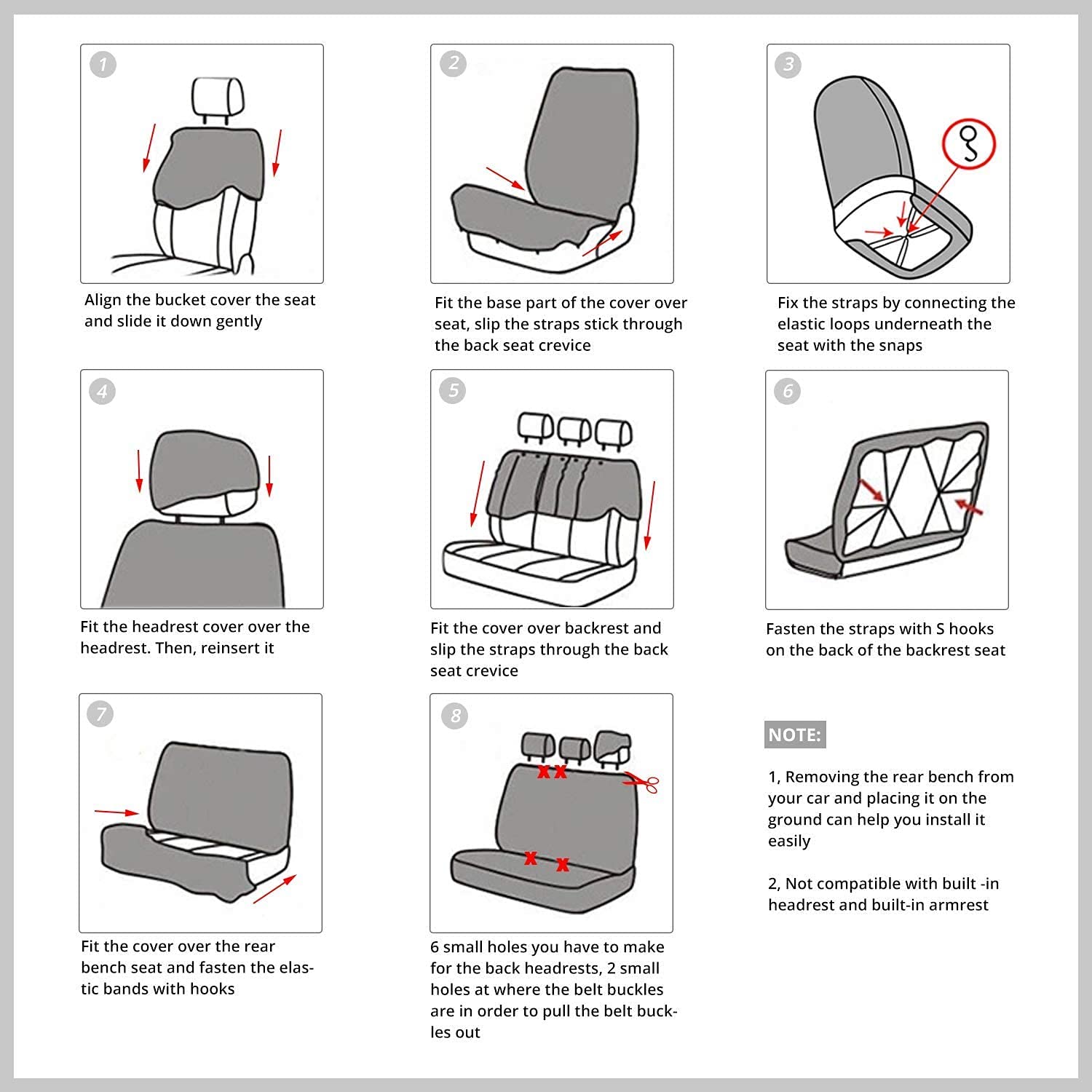 "Cute Zebra Pattern: The car seat cover for drivers with a cute zebra pattern is made of high-quality fabric and 4mm foam padding, offering a pretty elegant look for your car and keeping the upholstery clean and dry. Only compatible with removable armrests (cut-out holes). Stay in place: The zebra seat cover set has a spongy interior that fits snugly onto the car seat upholstery to keep the covers in place. This, along with the straps and clips, also ensures that the car seat covers stay in place well. Easy to install: Use straps with plastic buckles and sew them directly into the seat covers. The universal car seat covers are a breeze to install and fit most vehicles on the road. Machine washable. Included: 2 front seat covers, 5 separate headrest covers, 1 rear seat bench cover, 1 rear seat cover, 1 rear seat cover, 1 steering wheel cover, 2 shoulder pads, 1 pocket hook. Customer Service: If you have any questions, please contact our customer service, we would be happy to find out what issues you are having with the product."