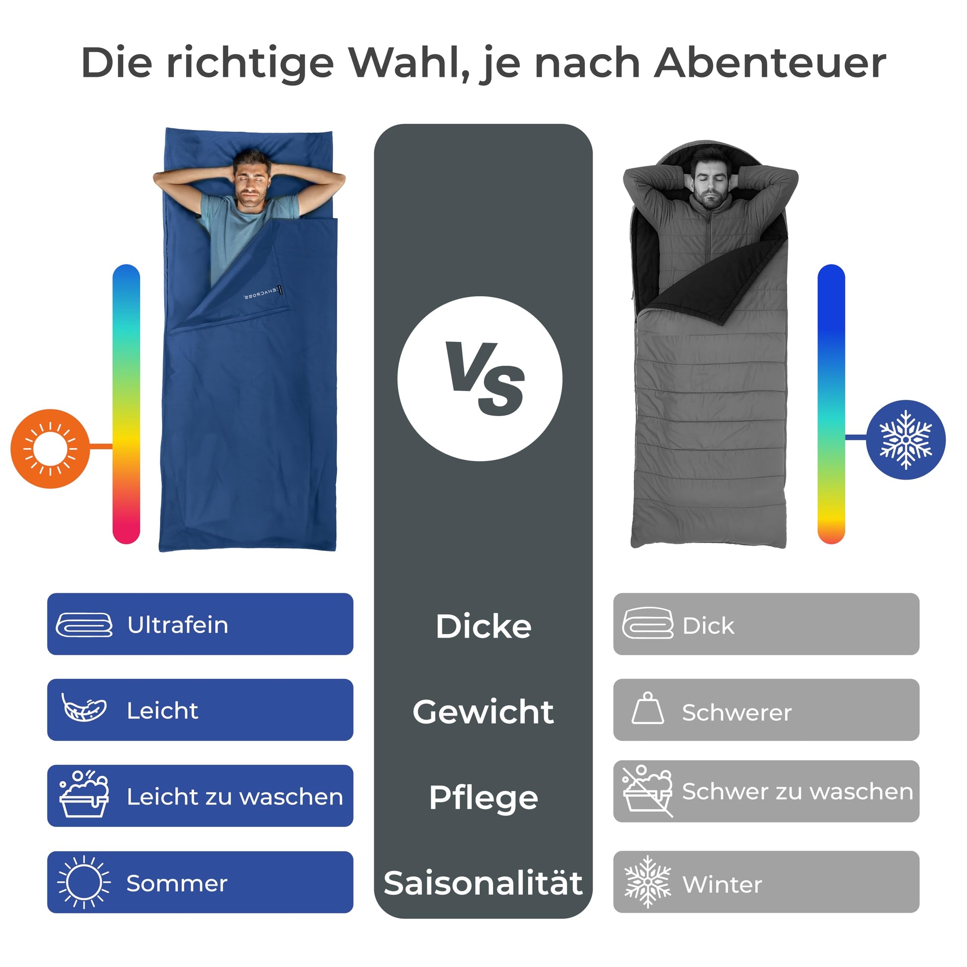 "Versatile and durable: This warm lightweight sleeping bag is not only sturdy but also perfect as a protective layer or thin sleeping bag. Ideal for camping, traveling, or hut stays – washable at 30 °C and quick-drying, suitable for regular use.",